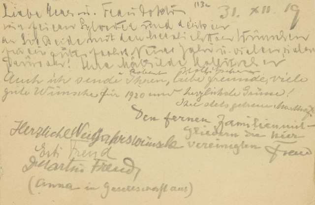 Auch ich sende Ihnen, liebe Freunde, viele gute Wünsche für 1920 und herzlichste Grüße!