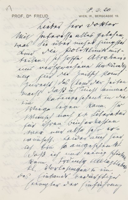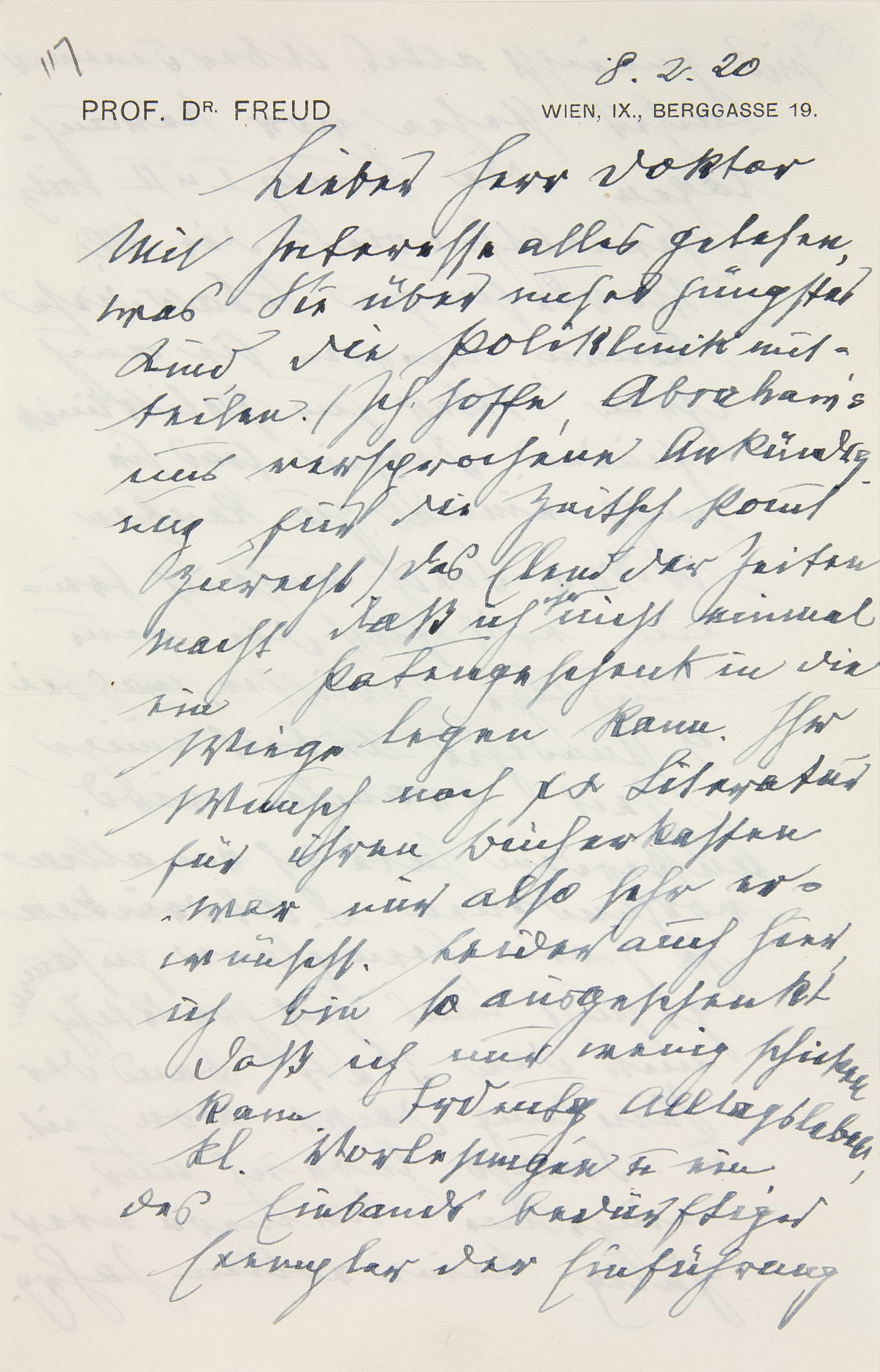 Sigmund Freud Papers: General Correspondence, 1871-1996; Eitingon, M.; From Freud; 1920; Jan.-Apr.
