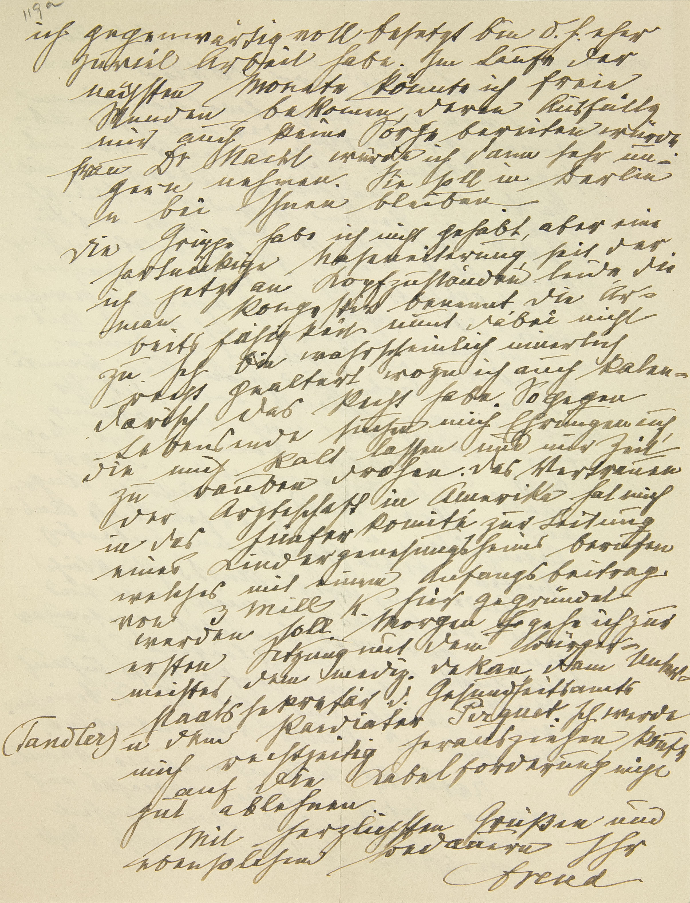 Die Grippe habe ich nicht gehabt, aber eine hartnäckige Naseneiterung, seit der ich jetzt an Kopfzuständen leide, die man kongestiv3 benennt. Die Arbeitsfähigkeit nimmt dabei nicht zu. Ich bin wahrscheinlich innerlich recht gealtert, wozu ich auch kalendarisch das Recht habe. So gegen Lebensende suchen mich Ehrungen auf, die mich kalt lassen und mir Zeit zu rauben drohen. Das Vertrauen der Ärzteschaft in Amerika hat mich in das Fünferkomitee zur Leitung eines Kindergenesungsheims berufen, welches mit einem Anfangsbeitrag von 3 Mill[ionen] Kronen hier gegründet werden soll.4 Morgenb gehe ich zur ersten Sitzung mit dem Bürgermeister, dem medizinischen Dekan, dem Unterstaatssekretär des Gesundheitsamts (Tandler)5c und dem Pädiater Pirquet6. Ich werde mich rechtzeitig herausziehen, konnte auf die Kabelforderung nicht gut ablehnen.