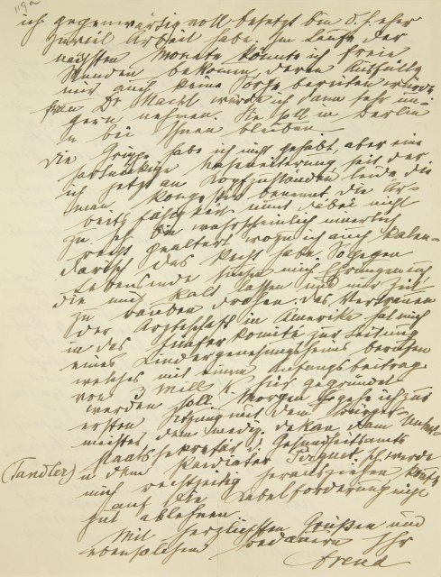 Ihre Andeutung über Ernsts glückliche Wahl verstehen wir nicht, wir sind ganz und gar unvorbereitet und getrauen uns nicht, ans Nächstliegende zu denken. Annerl sagt, es muß sich auf eine Heirat mit Frl. L. B. beziehen.2 Wir sind des Glücks recht entwöhnt.