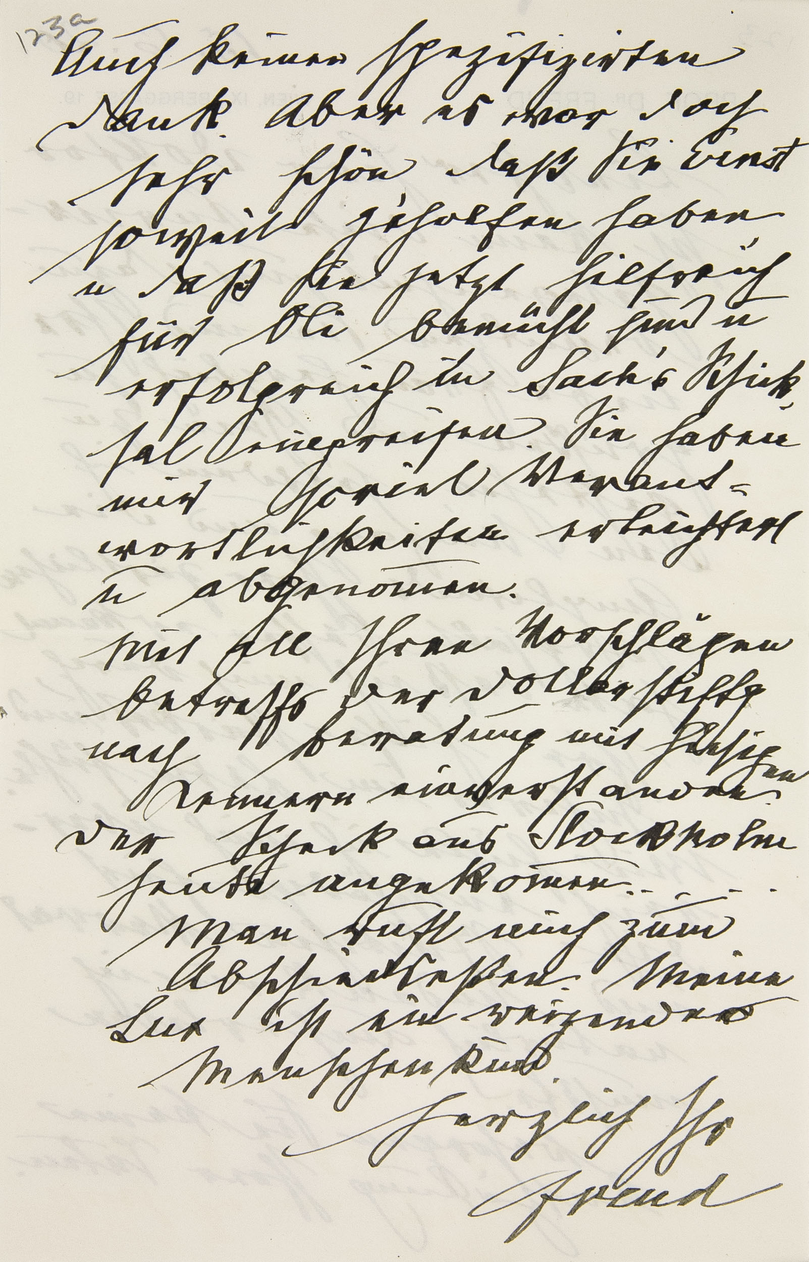 Ich kann diese Kuriergelegenheit1 nur dazu benützen, Sie und Ihre liebe Frau herzlich zu grüßen und Ihnen zu gestehen, seitdem ich den Umfang und die Amplitude Ihrer zärtlichen Sorgfalt besser erkannt habe, daß ich mich durch Ihre Hilfe stärker und sicherer im Leben fühle. Wie fühle ich mich überreich entschädigt für die Stückchen Verrat und Undank, die ich natürlich auch erleben mußte.