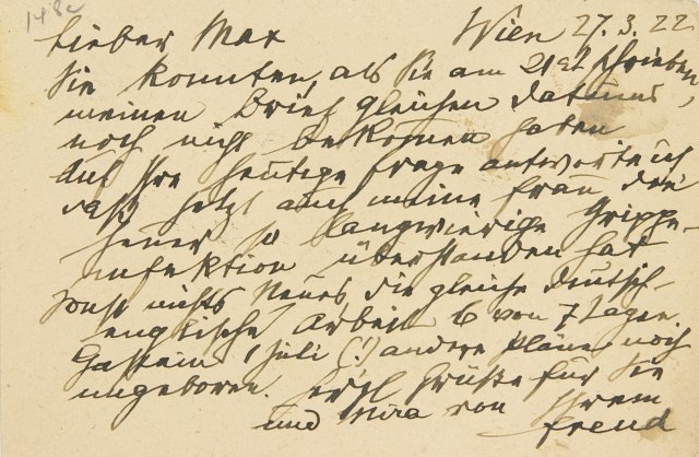 Auf Ihre heutige Frage antworte ich, daß jetzt auch meine Frau die heuer so langwierige Grippeinfektion überstanden hat. Sonst nichts Neues, die gleiche deutsch-englische Arbeit sechs von sieben Tagen. Gastein 1. Juli (!)1, andere Pläne noch ungeboren.