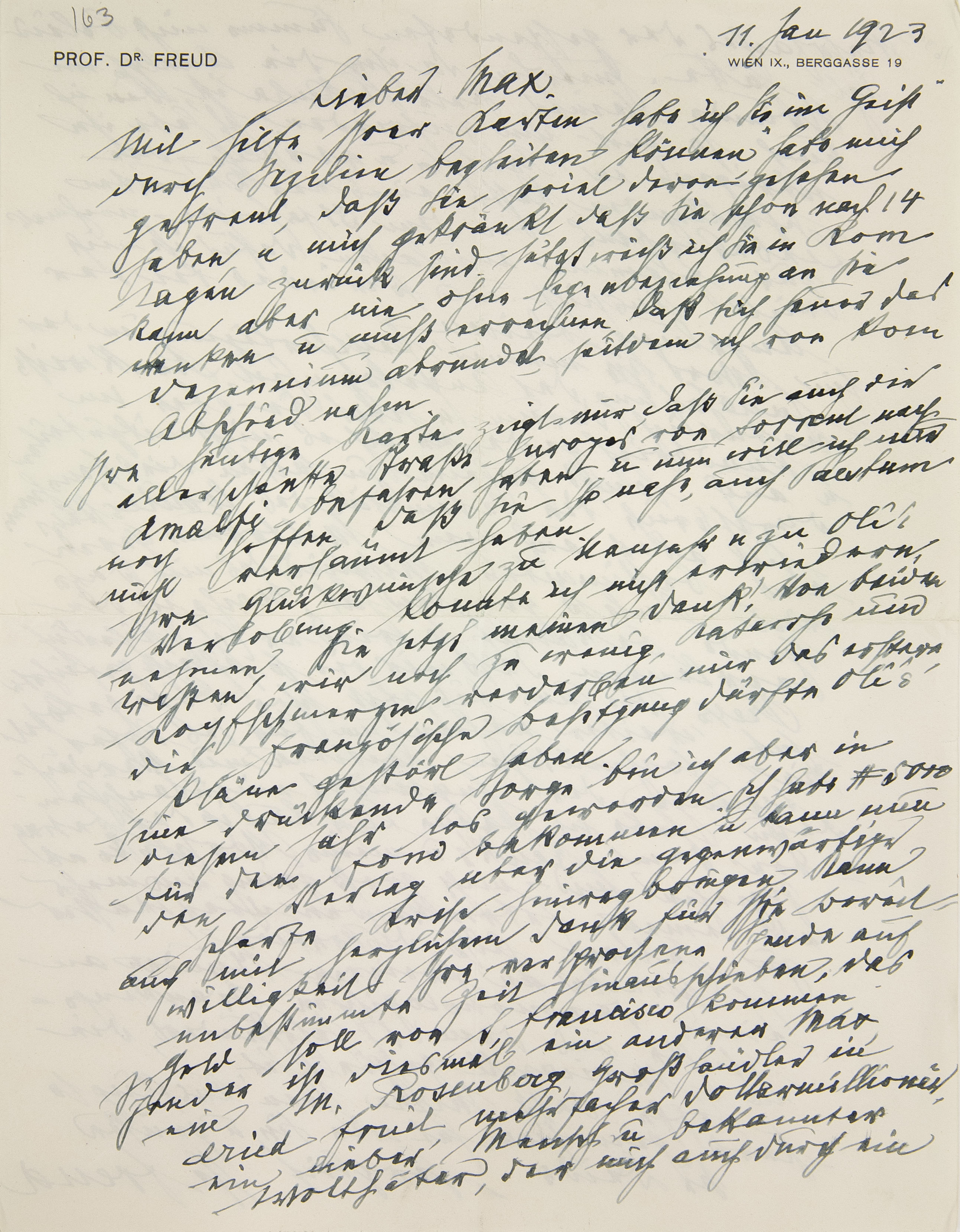 a Der zugehörige Briefumschlag adressiert nach: Roma, Gd Hotel de Russie. Aufschrift von Freuds Hand: Wenn abgereist, nachsenden!
