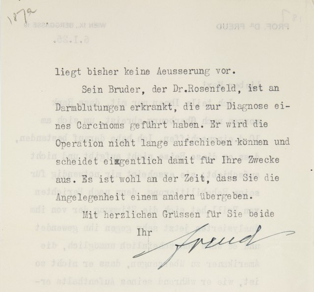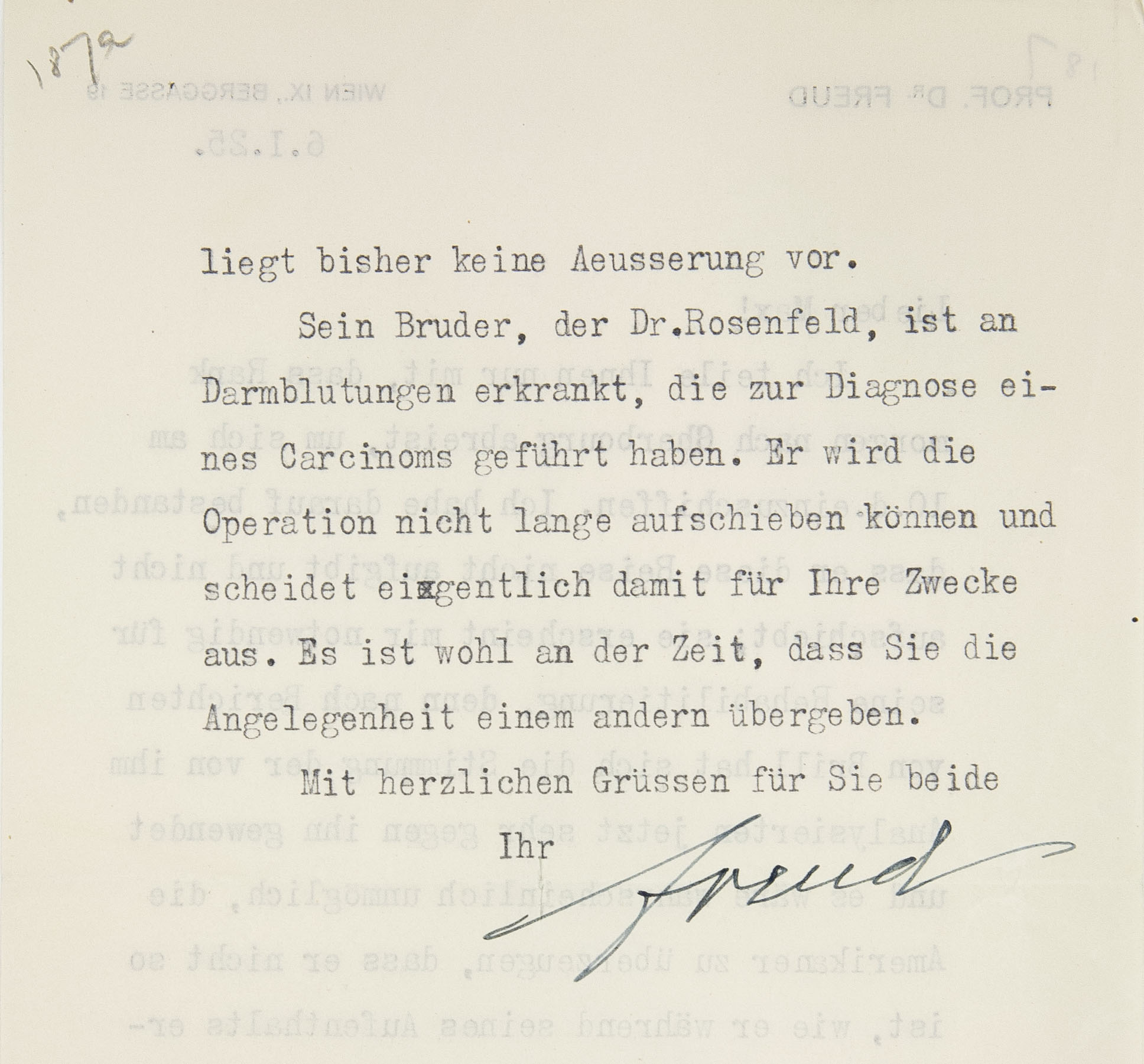Sein Bruder, der Dr. Rosenfeld, ist an Darmblutungen erkrankt, die zur Diagnose eines Karzinoms geführt haben. Er wird die Operation nicht lange aufschieben können und scheidet eigentlich damit für Ihre Zwecke aus. Es ist wohl an der Zeit, daß Sie die Angelegenheit einem andern übergeben.