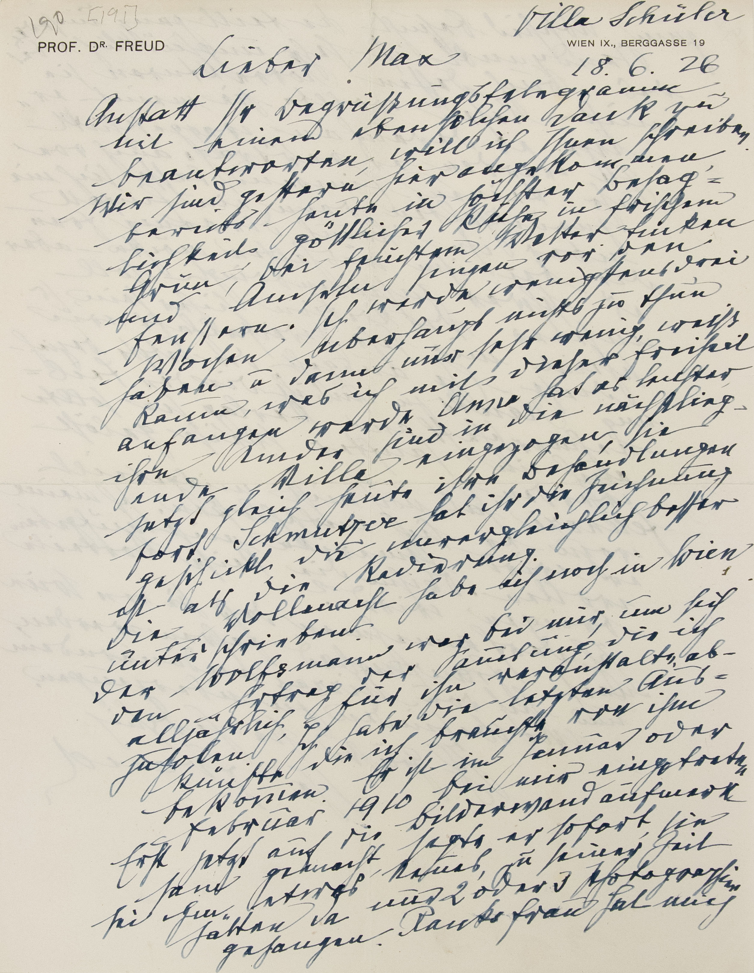 Der Wolfsmann war bei mir, um sich den Ertrag der Sammlung, die ich alljährlich für ihn veranstalte, abzuholen. Ich habe die letzten Auskünfte, die ich brauchte, von ihm bekommen. Er ist im Januar oder Februar 1910 bei mir eingetreten. Erst jetzt auf die Bilderwand aufmerksam gemacht, sagte er sofort, sie sei ihm etwas Neues, zu seiner Zeit hätten da nur zwei oder drei Photographien gehangen. Ranks Frau hat mich zum Abschied besucht. Sie teilt ganz unseren Standpunkt, ist sehr unglücklich über das Buch, dessen Korrekturen sie nicht lesen wollte. Sie meint, er lege es darauf an, „weggeschickt“ zu werden, er vertrage auch von ihr keinen Einwand, lasse sich nie zurückhalten, wenn ein Einfall über ihn kommt. Die arme Frau, die bei ihm aushalten möchte – aber es schwer zusammenbringt –, soll unserer Diskretion sicher sein. Es scheint mir sehr zweifelhaft, wie diese Ehe ausgeht. Die letzte Beziehung Ranks zu uns ist die der Teilnehmerschaft am Verlag, sie sollte auch in sanfter Weise gelöst werden.