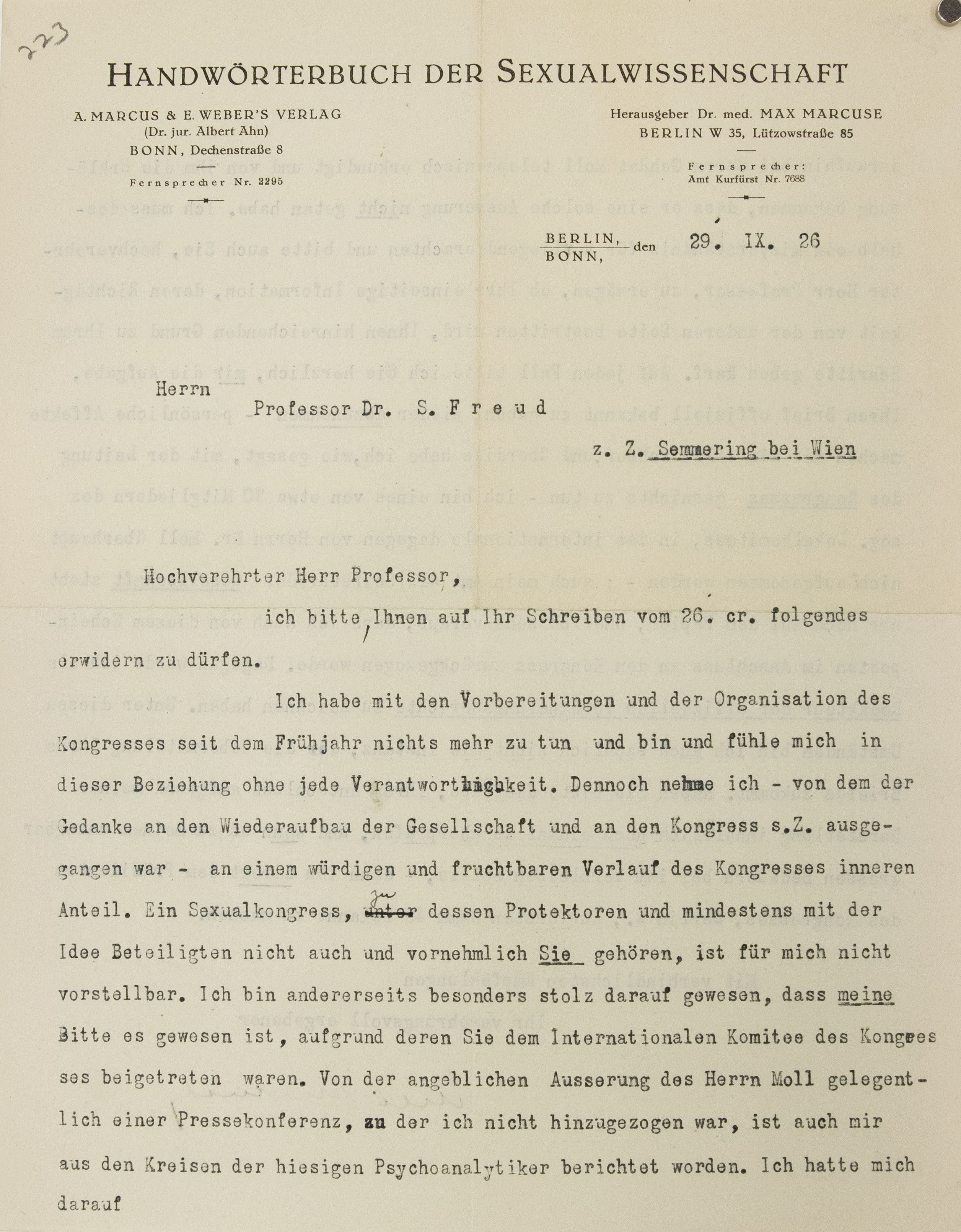 Sigmund Freud Papers: General Correspondence, 1871-1996; Eitingon, M.; From Freud; 1926; Sept.-Dec.