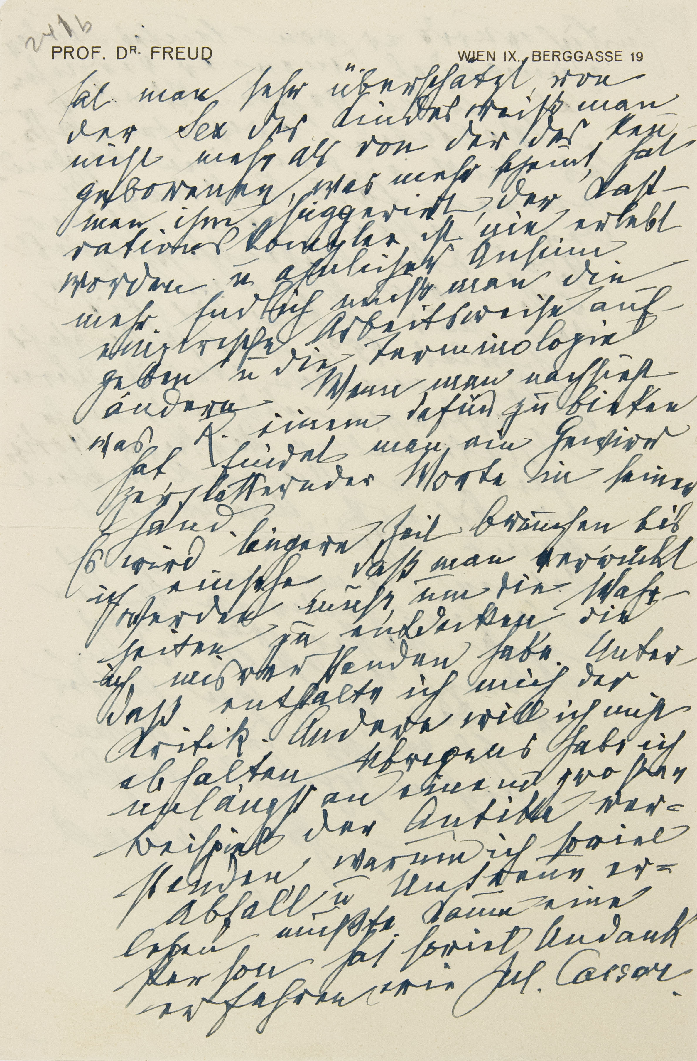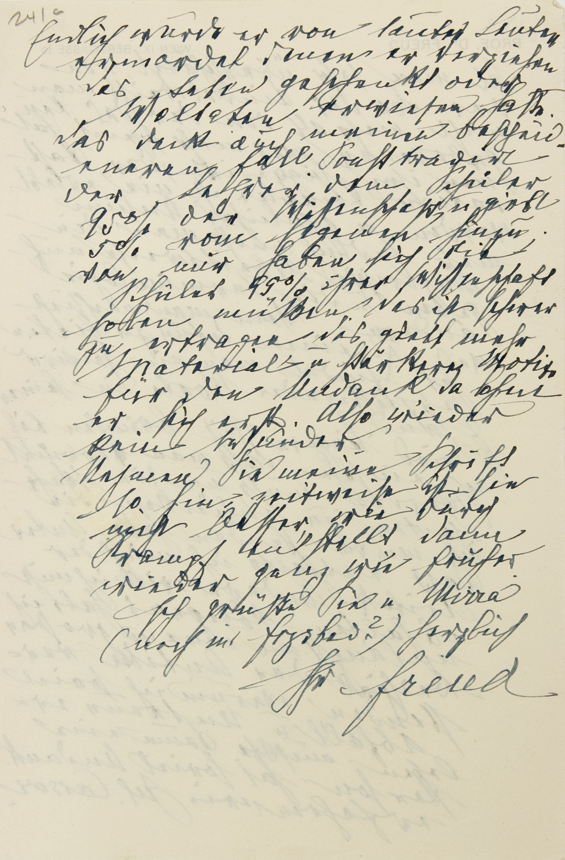 Ich habe nur noch diese Woche mit [U.] zu tun. Er geht dann nach Kiel und Schweden. Er macht sich besser, gibt sich Mühe; zweifelhaft, ob solcher Fall für Analyse sehr günstig ist. Im Juli und August werde ich völlig frei sein. Ende des Monats geht auch Minna auf eine Schweizerreise und macht Oli und Familie Raum. Das Zusammenleben zwischen den beiden Villen2 gestaltet sich sehr behaglich.