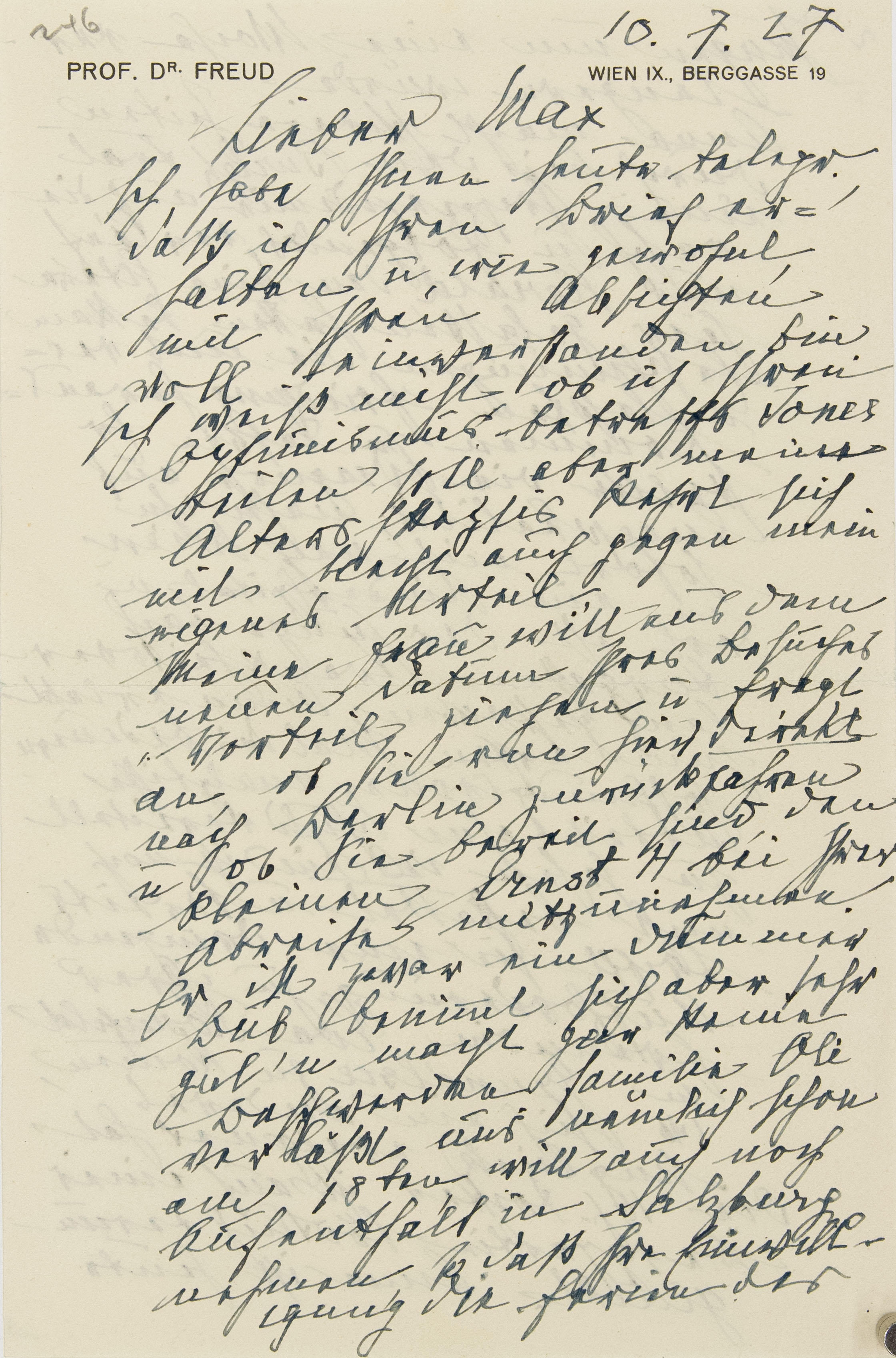 Ich habe Ihnen heute telegraphiert,1 daß ich Ihren Brief erhalten und, wie gewohnt, mit Ihren Absichten voll einverstanden bin. Ich weiß nicht, ob ich Ihren Optimismus betreffs Jones teilen soll, aber meineb Altersskepsis kehrt sich mit Recht auch gegen mein eigenes Urteil.