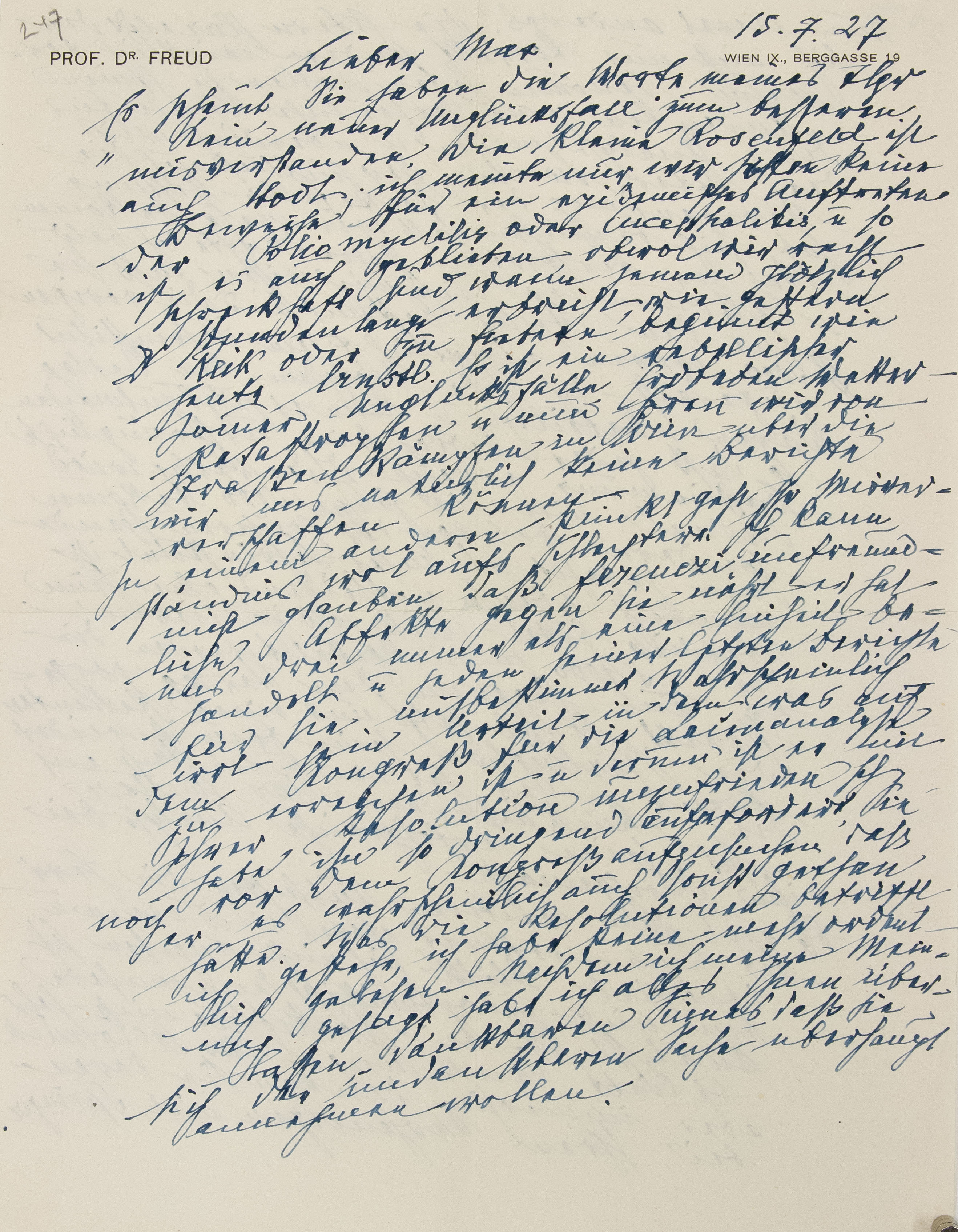 Es scheint, Sie haben die Worte meines Telegramms „Kein neuer Unglücksfall“ zum Besseren mißverstanden. Die kleine Rosenfeld ist auch tot; ich meinte nur, wir hätten keine Beweise für ein epidemisches Auftreten der Poliomyelitis oder Enzephalitis, und so ist es auch geblieben, obwohl wir recht schreckhaft sind, wenn jemand plötzlich stundenlange erbricht, wie gestern Dr. Reik,1 oder zu fiebern beginnt wie heute Ernstl. Es ist ein rebellischer Sommer, Unglücksfälle, Erdbeben, Wetterkatastrophen, und nun hören wir von Straßenkämpfen in Wien,2 über die wir uns natürlich keine Berichte verschaffen können.