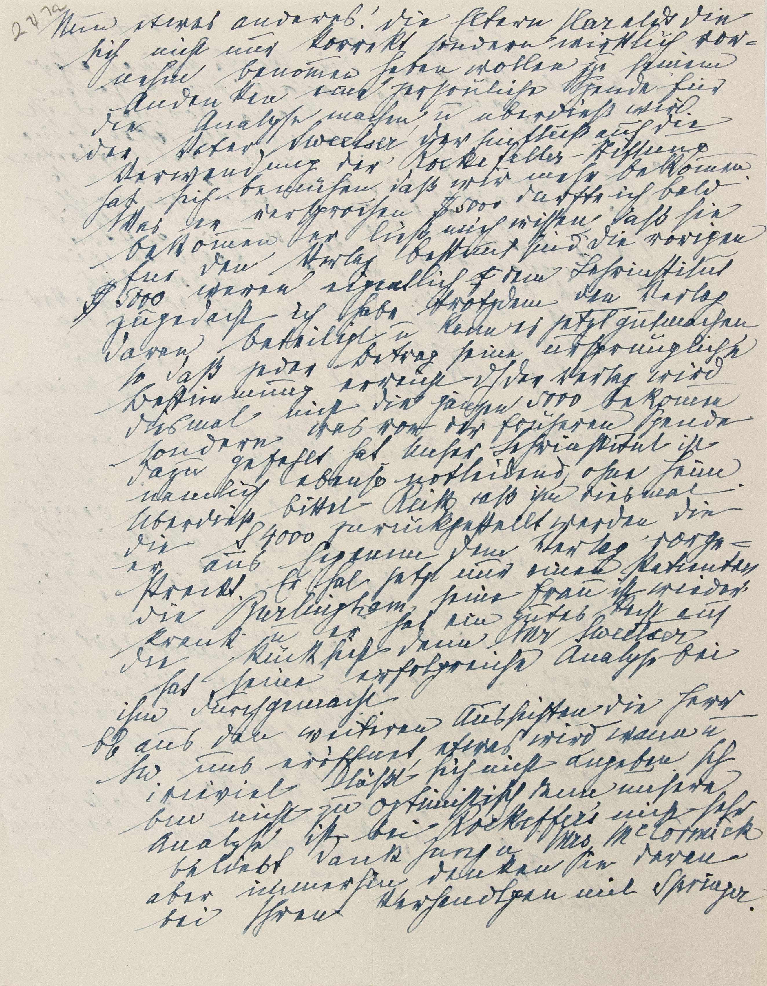 Nun etwas anderes! Die Eltern Haralds,3 die sich nicht nur korrekt, sondern wirklich vornehm benommen haben, wollen zu seinem Andenken eine persönliche Spende für die Analyse machen, und überdies wird der Vater Sweetser, der Einfluß auf die Verwendung der Rockefeller-Stiftung hat, sich bemühen, daß wir mehr bekommen. Was er versprochen, $ 5000, dürfte ich bald bekommen, er ließ mich wissen, daß sie für den Verlag bestimmt sind. Die vorigen $ 5000 waren eigentlicha dem Lehrinstitut zugedacht, ich habe trotzdem den Verlag daran beteiligt und kann es jetzt gutmachen, so daß jeder Betrag seine ursprüngliche Bestimmung erreicht. D. h. der Verlag wird diesmal nicht die ganzen 5000 bekommen, sondern was von der früheren Spende dazu gefehlt hat. Unser Lehrinstitut ist nämlich ebenso notleidend, ohne Heim. Überdies bittet Reik, daß ihm diesmal die S 4000 zurückgestellt werden, die er aus Eigenem dem Verlag vorgestreckt. Er hat jetzt nur einen Patienten, die Burlingham, seine Frau ist wieder krank, und er hat ein gutes Recht auf die Rücksicht, denn Mr. Sweetser hat seine erfolgreiche Analyse bei ihm durchgemacht.