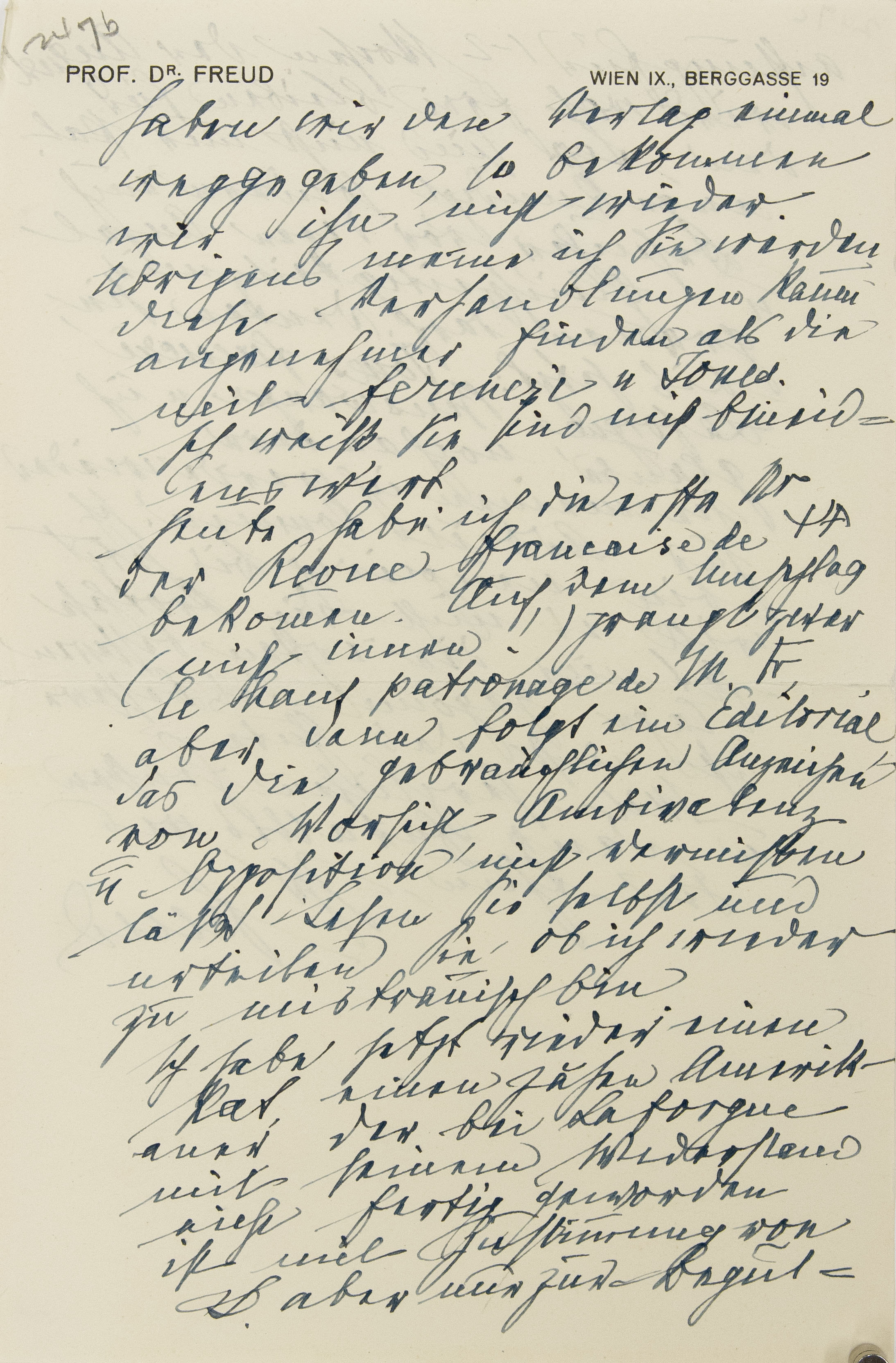 Heute habe ich die erste Nr. der ‚Revue française de Psychanalyse‘ bekommen. Auf dem Umschlag (nicht innen!) prangt zwar le haut patronage de M. Freud, aber dann folgt ein Editorial, das die gebräuchlichen Anzeichen von Vorsicht, Ambivalenz und Opposition nicht vermissen läßt. Lesen Sie selbst, und urteilen Sie, ob ich wieder zu mißtrauisch bin.