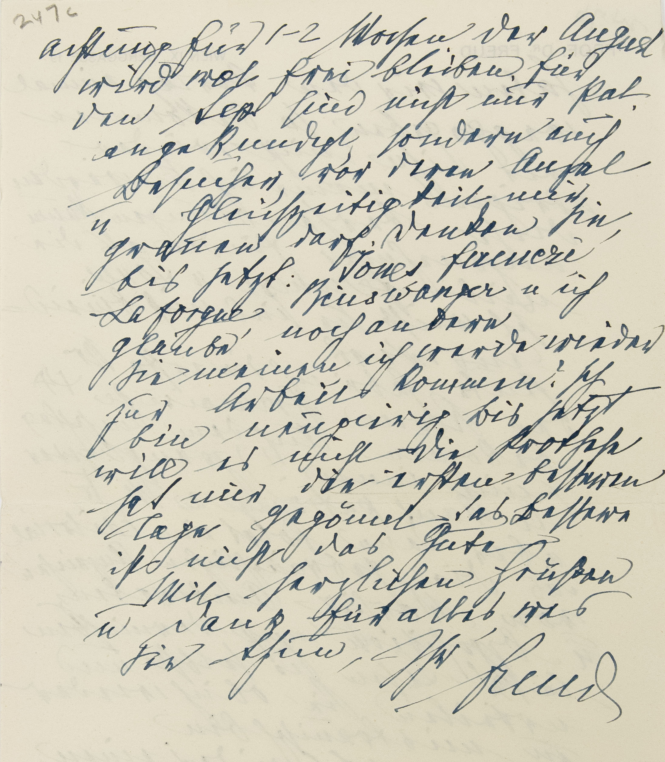 Ich habe jetzt wieder einen Patienten, einen zähen Amerikaner, der bei Laforgue mit seinem Widerstand nicht fertig geworden ist, mit Zustimmung von L., aber nur zur Begutachtung für 1-2 Wochen.5 Der August wird wohl frei bleiben. Für den September sind nicht nur Patienten angekündigt, sondern auch Besucher, vor deren Anzahl und Gleichzeitigkeit mir grauen darf. Denken Sie, bis jetzt: Jones, Ferenczi, Laforgue, Binswanger, und ich glaube, noch andere.