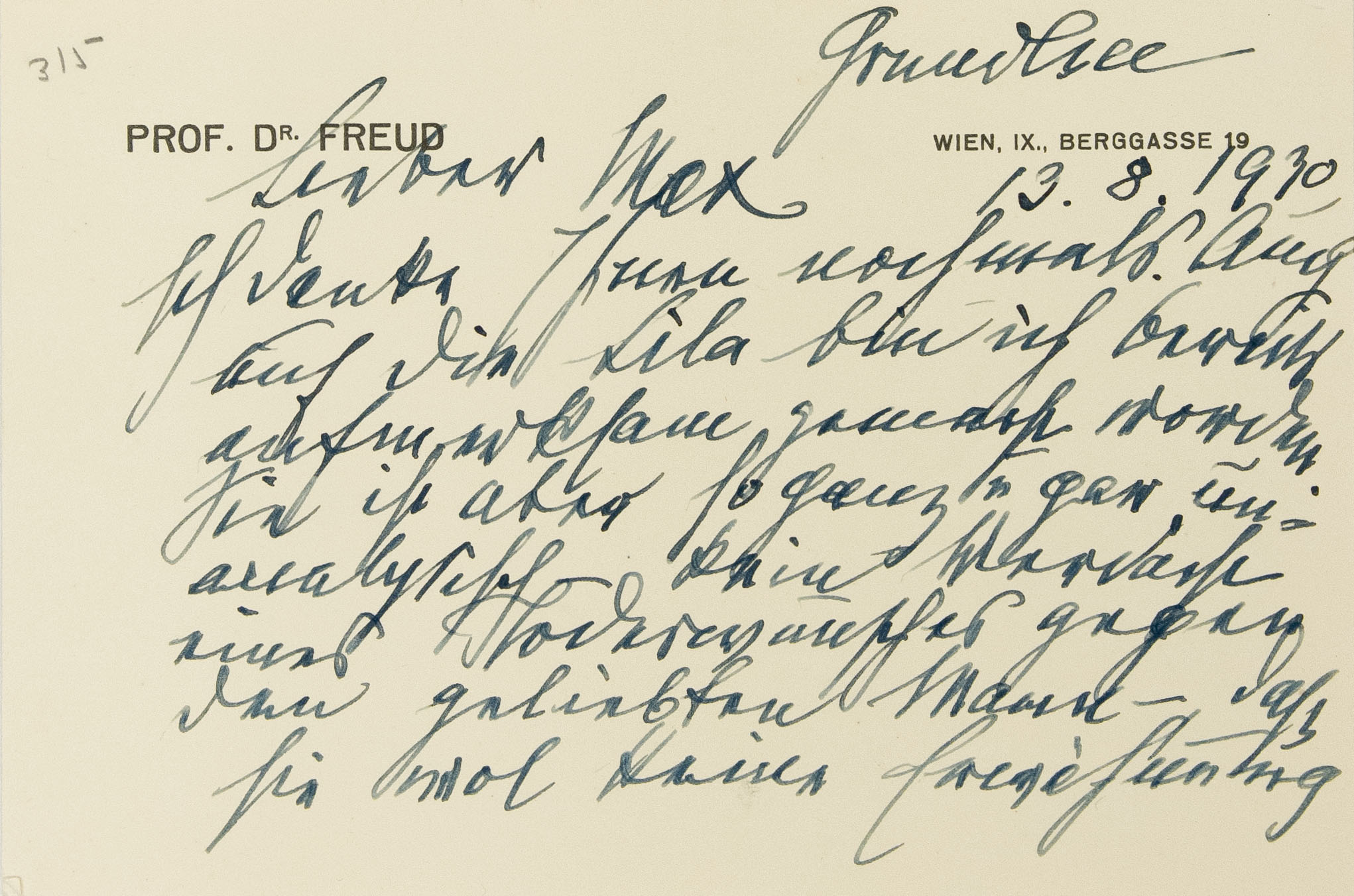Ich danke Ihnen nochmals. Auch auf die ‚Lila‘ bin ich bereits aufmerksam gemacht worden. Sie ist aber so ganz und gar unanalytisch – kein Verdacht eines Todeswunsches gegen den geliebten Mann –, daß sie wohl keine Erwähnung verdient. Meine Antwort, die Anna verlesen soll, ist jetzt fertig. Es scheint, daß man sich in Frankfurt aus der Preisverteilung ein Volksfest machen will.1