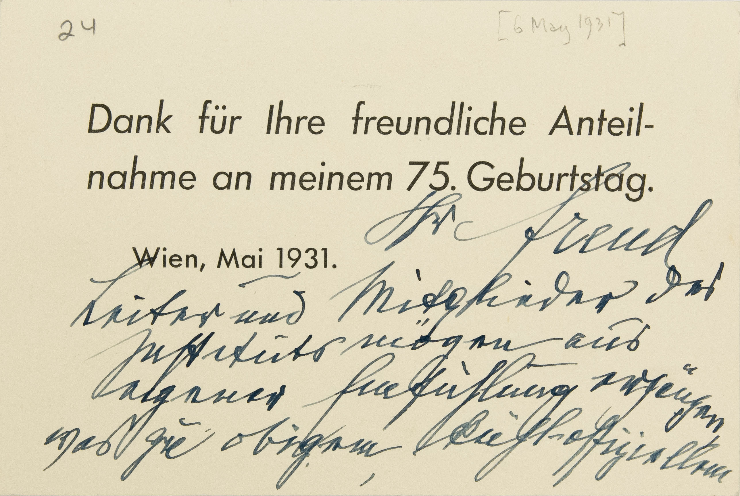 Sigmund Freud Papers: General Correspondence, 1871-1996; Eitingon, M.; From Freud; 1931; May-Aug.