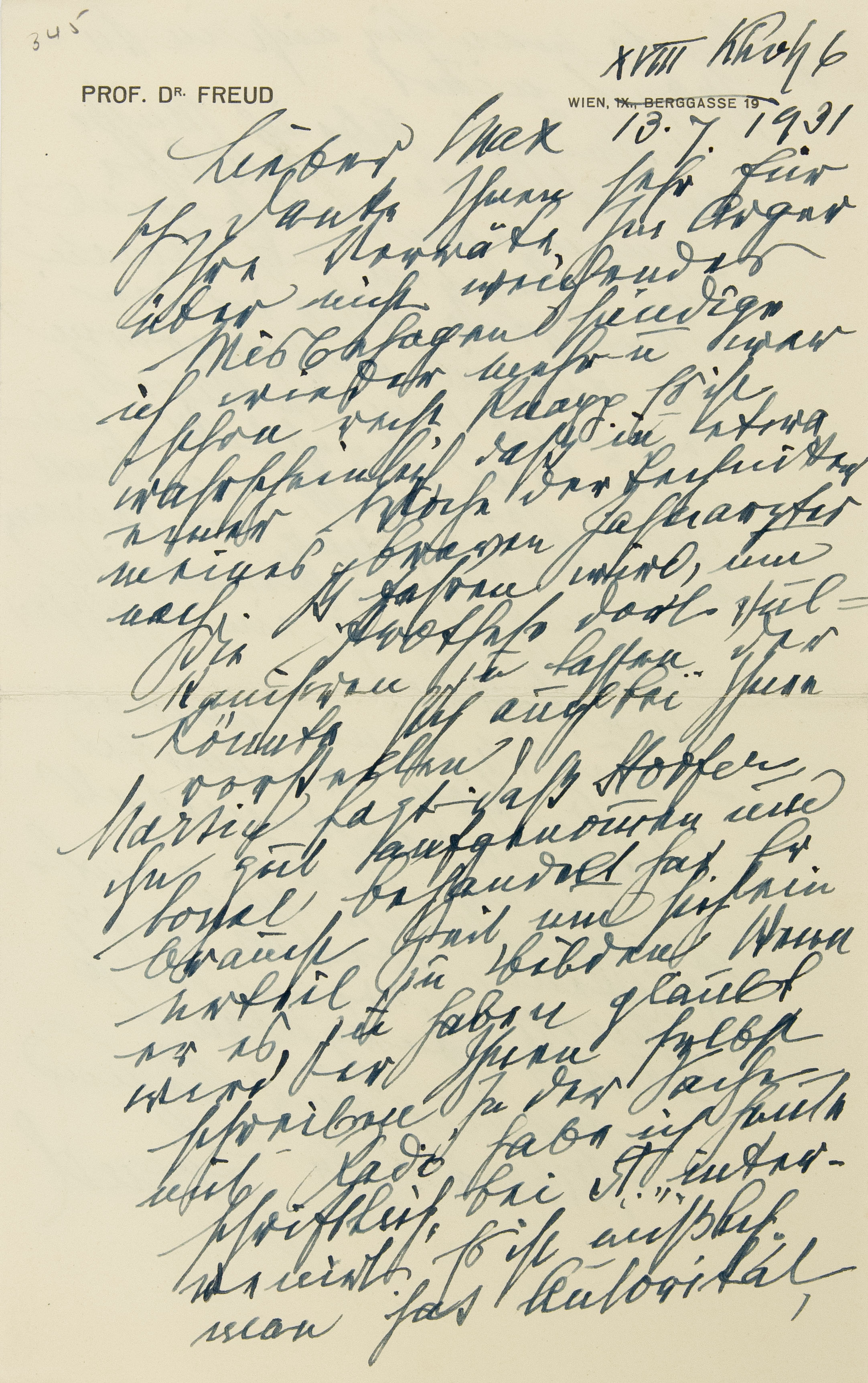 a MS: XVIII Khvh 6, über das durchgestrichene „[Wien] IX., Berggasse 19“ des gedruckten Briefkopfes geschrieben.