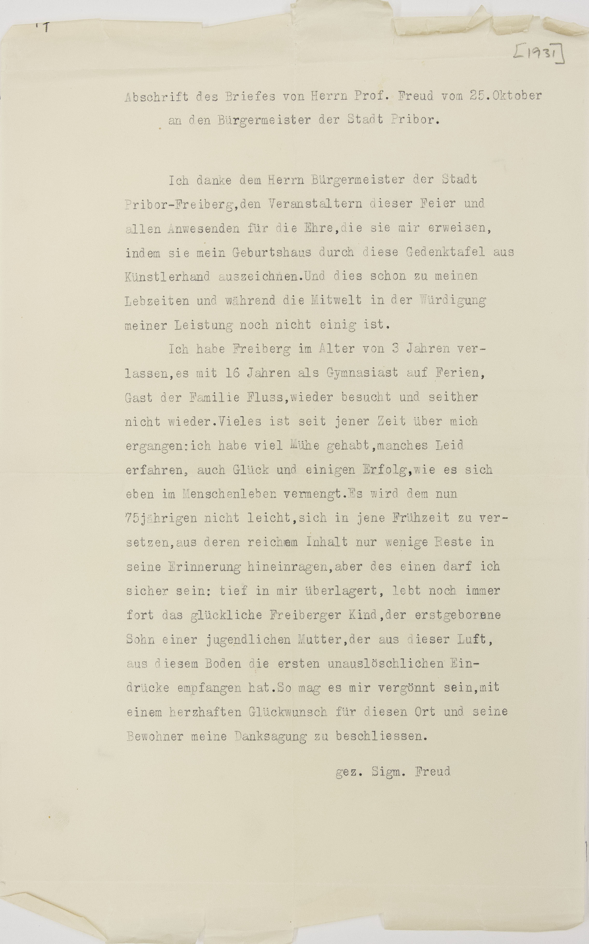[Briefkopf Wien] 27. X. 1931