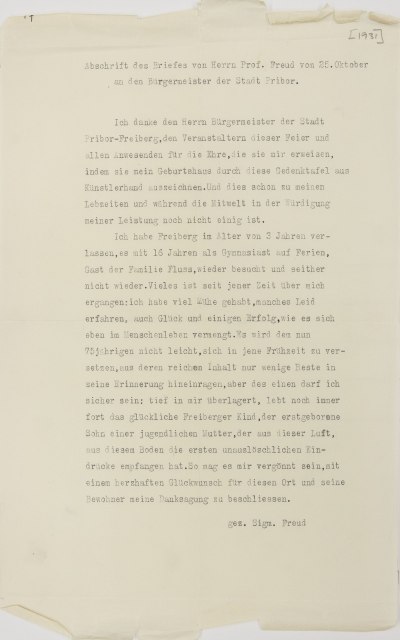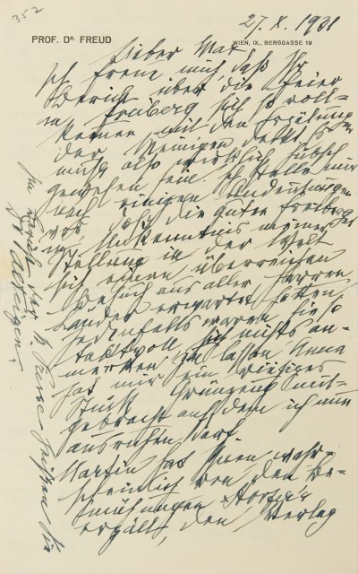 Ferenczi hat sich auch bei mir angekündigt. Ich erwarte ihn für morgen, wollte aber den Brief an Sie nicht aufschieben.