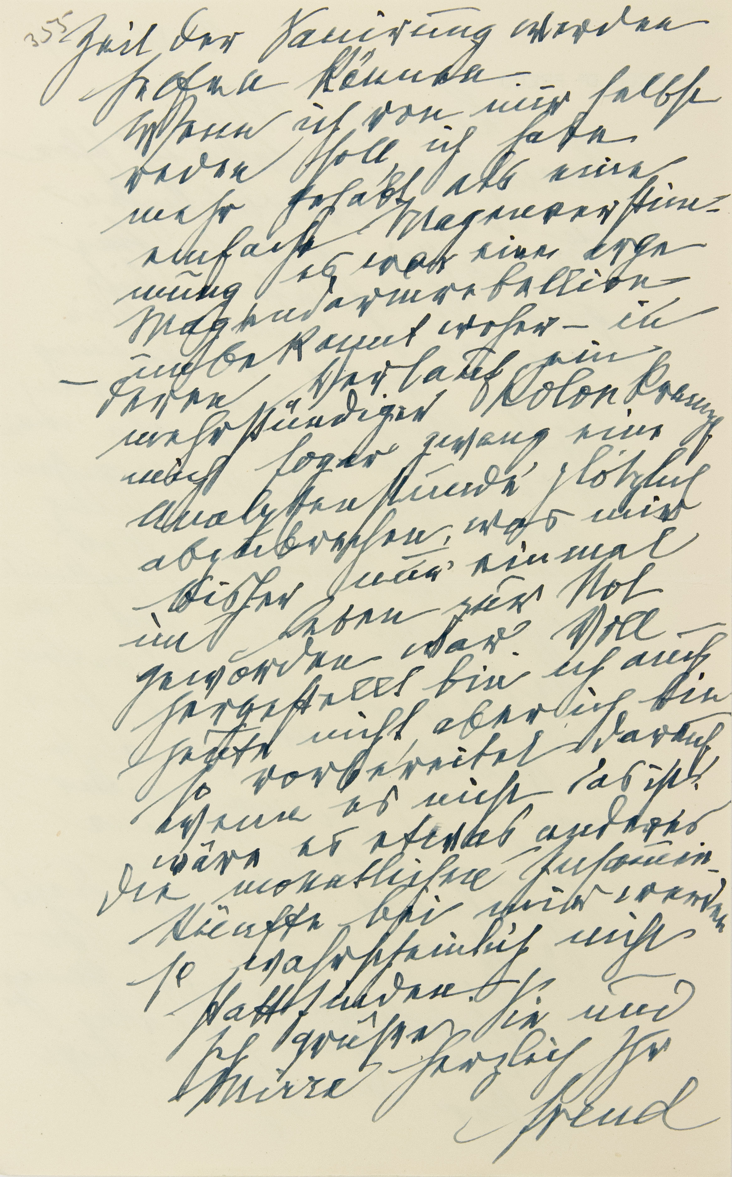 Wenn ich von mir selbst reden soll, ich habe mehr gehabt als eine einfache Magenverstimmung, es war eine arge Magendarmrebellion – unbekannt woher –, in deren Verlauf ein mehrstündiger Kolonkrampf mich sogar zwang, eine Analysenstunde plötzlich abzubrechen, was mir bisher nur einmal im Leben zur Not geworden war. Voll hergestellt bin ich auch heute nicht, aber ich bin so vorbereitet darauf, wenn es nicht das ist, wäre es etwas anderes. Die monatlichen Zusammenkünfte bei mir3 werden so wahrscheinlich nicht stattfinden.