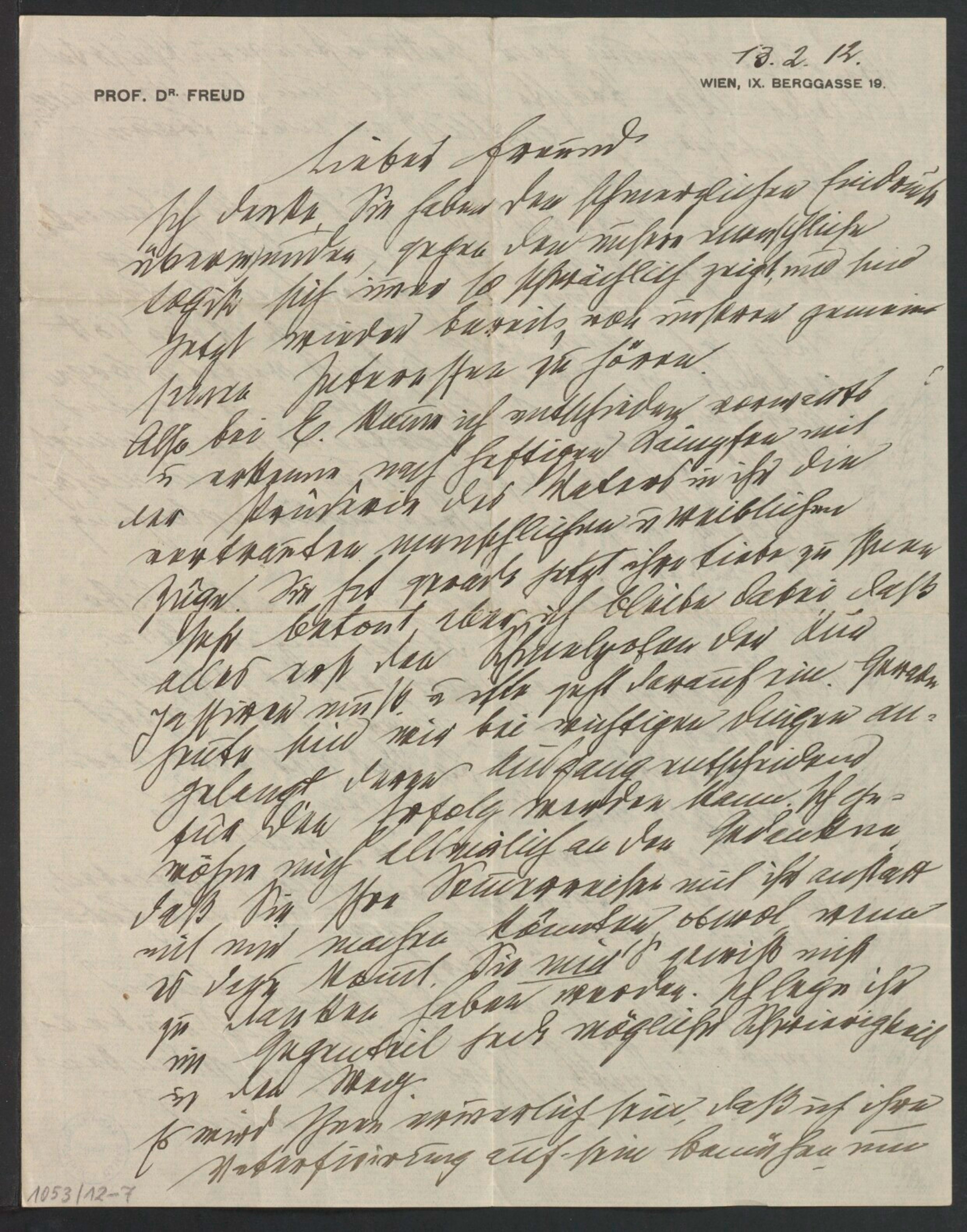 Prof. Dr. Freud Wien, IX. Berggasse 19.