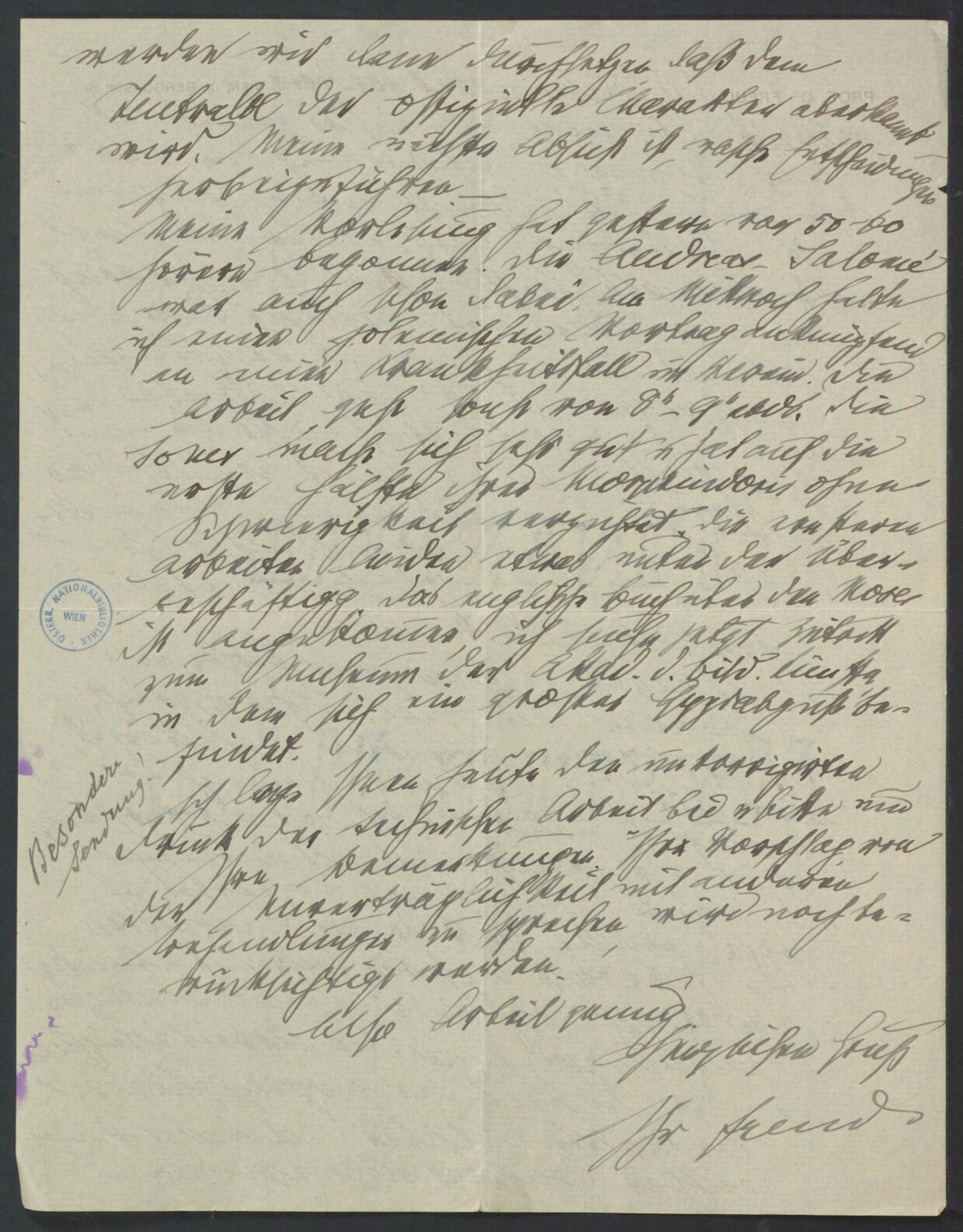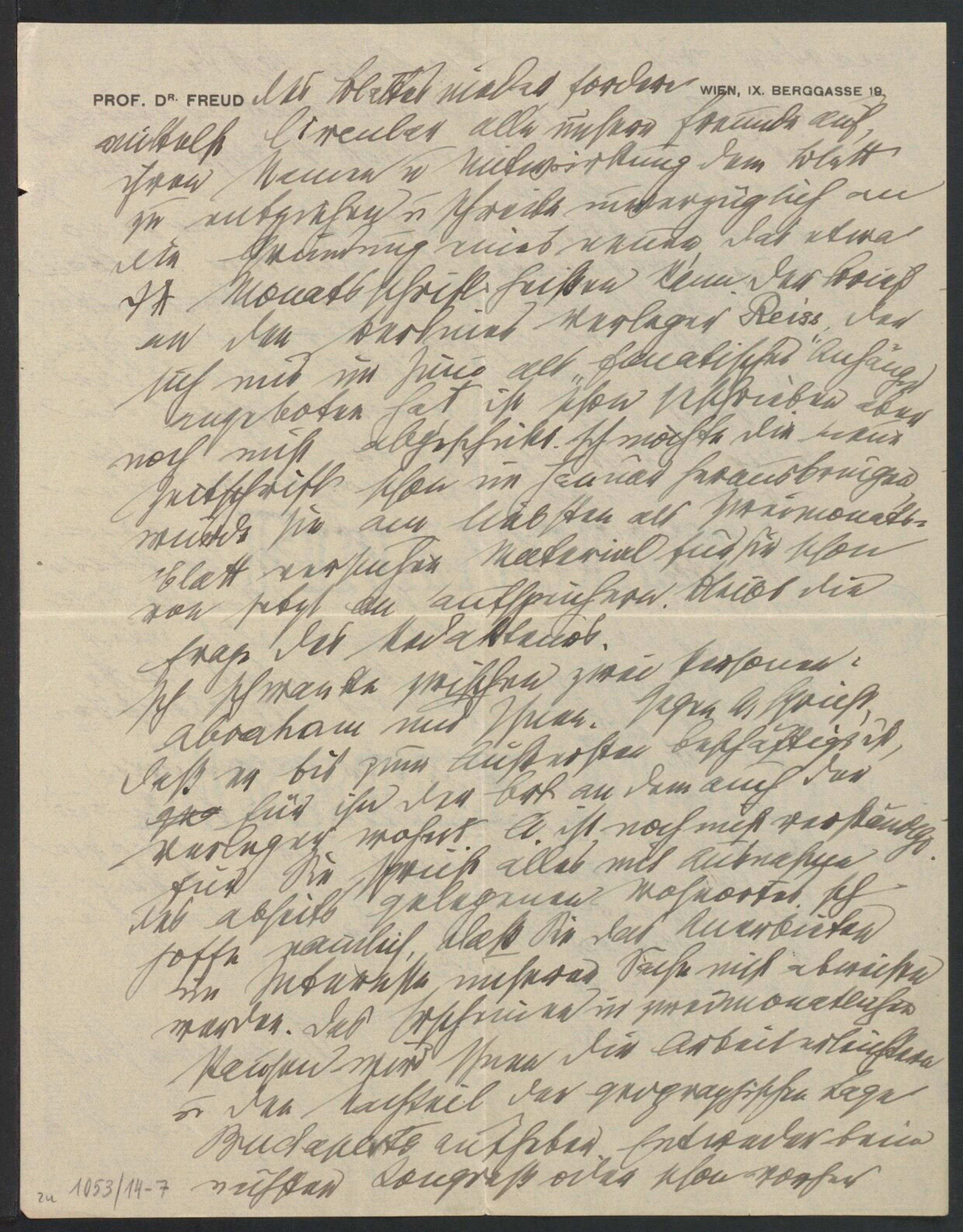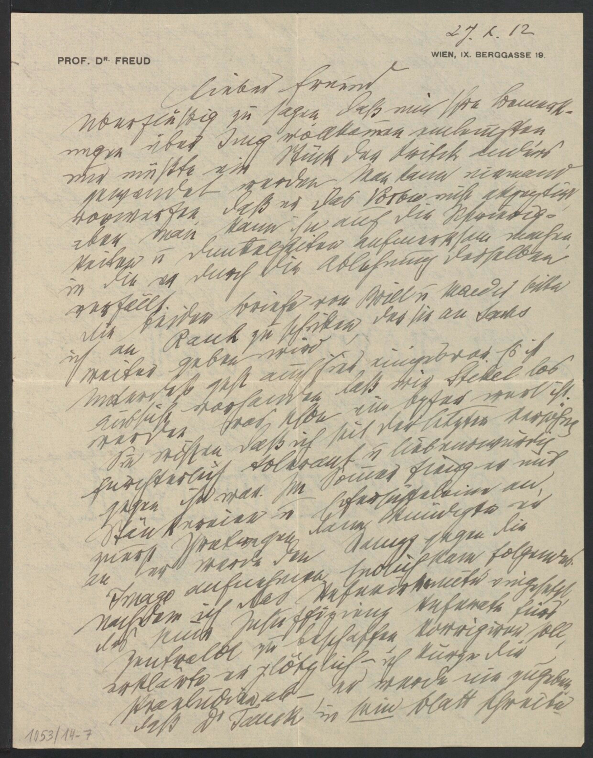 S.27.X.12 Prof. Dr. Freud Wien, IX. Berggasse 19. Lieber Freund Überflüssig zu sagen, daß mir Ihre Bemerkungen über Jung vollkommen einleuchten, nur müßte ein Stück der Kritik anders gewendet werden. Man kann niemand vorwerfen, daß er das Vorbewußte nicht akzeptiert, aber man kann ihn auf die Schwierigkeiten und Dunkelheiten aufmerksam machen, in die er durch die Ablehnung desselben verfällt. Die beiden Briefe von Brill und Maeder bitte ich an Rank zu schicken, der sie an Sachs weitergeben wird. Unterdes geht auch hier einiges vor. Es ist Aussicht vorhanden, daß wir Stekel loswerden, was schon ein Opfer wert ist.1 Sie wissen, daß ich seit der letzten Versöhnung fürchterlich tolerant und liebenswürdig gegen ihn war. Im Sommer fing er mit Stänkereien und Eifersüchteleien an, zuerst Ihretwegen, dann kündigte er an, er werde den Kampf gegen die Imago aufnehmen. Endlich kam folgendes. Nachdem ich das Referierkomitee eingesetzt, das seine Insuffizienz, Referate fürs Zentralblatt zu beschaffen, korrigieren soll, erklärte er plötzlich ‑ ich kürze die Präludien ab ‑, er werde nie zugeben, daß Dr. Tausk in sein[em] Blatt schreibe. Meine Antwort war, es sei nicht sein Blatt, sondern das Organ der I.Öα V., und es ginge nicht an, ein Mitglied derselben wegen persönlicher Verfeindung mit dem Redakteur von der Arbeit auszuschließen. Darauf Schmollen. Im Laufe der folgenden Woche ließ er mich von drei verschiedenen Seiten her wissen, er werde sich trennen, sein Blatt unabhängig machen und für alle eröffnen. Also er hält die Situation für günstig, einen Verrat auszuführen. Darauf meine erste Aktion. Ich schrieb ihm, daß ich meinen letzten technischen Beitrag zurückziehe, bis die Differenz zwischen uns behoben sei. An Bergmann2 ‑ zu dem ich kein Zutrauen habe ‑ wandte ich mich (22/X) mit der Anfrage, ob er im Falle eines Konflikts auf mich oder auf Stekel verzichten wolle. Heute lief erst die Antwort von Bergmann ein, er werde in einigen Tagen auf den Inhalt des Briefes zurückkommen. Stekel schweigt, es wird also geplant und vorbereitet. Daher heute mein zweiter Schritt. Ich habe von St[ekel] verlangt, sich zu äußern, nachdem ich von seinen Absichten durch mehrere Mittelspersonen gehört habe. Was er tun will, weiß ich noch nicht. Aber mein weiterer Weg ist vorgezeichnet. Kommt keine volle Unterwerfung bei ihm heraus und ist Bergm[anns] Antwort zweifelhaft, so lege ich sofort die Herausgeberschaft des Blattes nieder, fordere mittelst Zirkular alle unsere Freunde auf, ihren Namen und Mitwirkung dem Blatt zu entziehen, und schreite unverzüglich an die Gründung eines neuen, das etwa -A Monatsschrift heißen kann. Der Brief an den Berliner Verleger Reiss3, der sich mir im Juni als +fanatischer* Anhänger angeboten hat, ist schon geschrieben, aber noch nicht abgeschickt. Ich möchte die neue Zeitschrift schon im Januar herausbringen, würde sie am liebsten als Zweimonatsblatt versuchen, Material für sie schon von jetzt an aufspeichern. Bleibt die Frage des Redakteurs. Ich schwanke zwischen zwei Personen: Abraham und Ihnen. Gegen A[braham] spricht, daß er bis zum äußersten beschäftigt ist, für ihn der Ort, an dem auch der Verleger wohnt. A[braham] ist noch nicht verständigt. Für Sie spricht alles mit Ausnahme des abseits gelegenen Wohnortes. Ich hoffe nämlich, daß Sie das Anerbieten im Interesse unserer Sache nicht abweisen werden. Das Erscheinen in zweimonatlichen Pausen wird Ihnen die Arbeit erleichtern und den Nachteil der geographischen Lage Budapests aufheben. Entweder beim nächsten Kongreß oder schon vorher werden wir dann durchsetzen, daß dem Zentralblatt der offizielle Charakter aberkannt wird. Meine nächste Absicht ist, rasche Entscheidungen herbeizuführen. ‑ Meine Vorlesung hat gestern vor 50 ‑ 60 Hörern begonnen. Die Andreas‑Salomé war auch schon dabei. Am Mittwoch halte ich einen polemischen Vortrag[,] anknüpfend an einen Krankheitsfall[,] im Verein.4 Die Arbeit geht sonst von 8h ‑ 9h abends. Die Jones macht sich sehr gut und hat auf die erste Hälfte ihrer Morphindosis ohne Schwierigkeit verzichtet. Die ernsteren Arbeiten leiden etwas unter der Überbeschäftigung. Das englische Buch über den Moses ist angekommen, ich suche jetzt Zutritt zum Museum der Akademie der Bildenden Künste5, in dem sich ein großer Gipsabguß befindet. Ich lege Ihnen heute den unkorrigierten Druck der technischen Arbeit beiA und bitte um Ihre Bemerkungen. Ihr Vorschlag, von der Unverträglichkeit mit anderen Behandlungen zu sprechen, wird noch berücksichtigt werden.6 Also Arbeit genug. Herzlichen Gruß Ihr Freud _________ A Neben diesen Absatz schräg an den linken Rand geschrieben: Besondere Sendung! 1 Der Bruch zwischen Stekel und Freud wird aus dessen Sicht unter anderen von Jones (II, S. 168f.), Clark (Freud, S. 357) und Gay (Freud, S. 232) beschrieben. Vgl. auch Freuds Brief an Abraham vom 3.11.1912 (Briefwechsel, S. 126f.). Stekels Version findet sich in seiner Autobiographie (New York 1950, S. 142ff.), in der er vermutet, Jung habe bei Freud gegen ihn gearbeitet. Sein Austritt aus der Vereinigung wurde am 6. November bekanntgegeben (siehe Protokolle IV, S. 108f. - wo die Herausgeber auch eine Darstellung Freuds und Federns anführen - und Zeitschrift, 1913, 1: S. 112). Freud gründete als neues offizielles Organ der IPV die Internationale Zeitschrift für ärztliche Psychoanalyse; er war Herausgeber, Redakteure waren Ferenczi, Rank und Jones. Sie erschien sechsmal im Jahr, beginnend mit Jänner 1913. Das Zentralblatt existierte unter Stekels alleiniger Führung noch bis September 1914 und ging dann ein. 3 Erich Reiss (1887-1951), deutscher Verleger, Begründer des Erich Reiss Verlags, der die Zeitschriften "Zukunft" und "Schaubühne" verlegte. Er wurde 1937 interniert und emigrierte nach seiner Freilassung nach Schweden, England und New York, wo er starb. 4 Freuds Vortrag vom 30.10.1912 ("Eine kausuistische Mitteilung mit polemischen Be