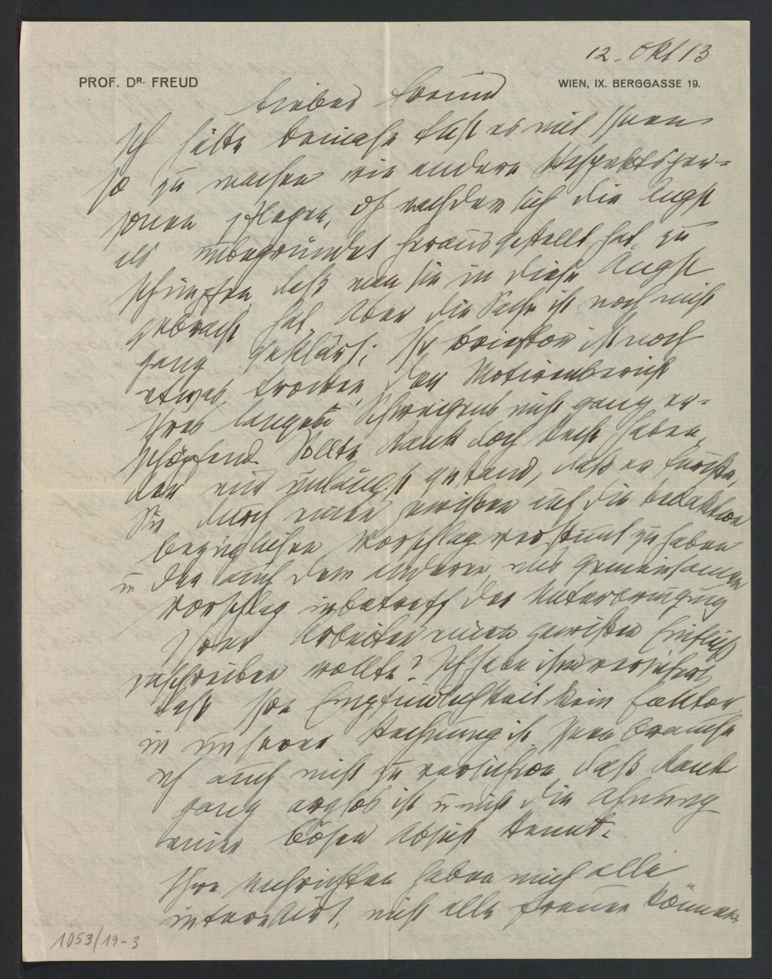 WIEN, IX. BERGGASSE 19.12. Okt 13 Lieber Freund Ich hätte beinahe Lust es mit Ihnen