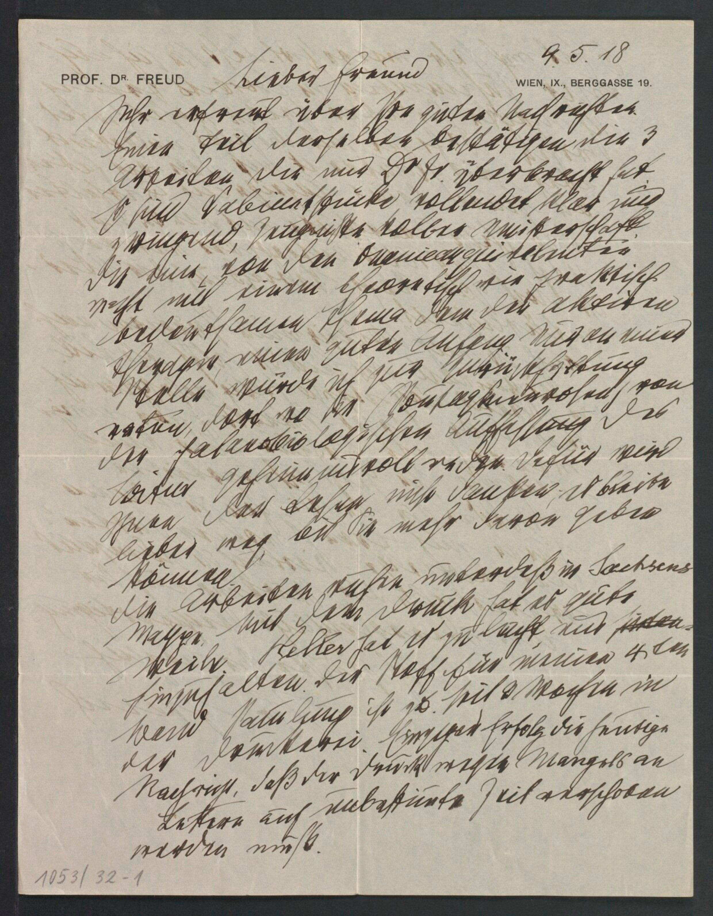 Prof. Dr. Freud Wien, IX. Berggasse 19.