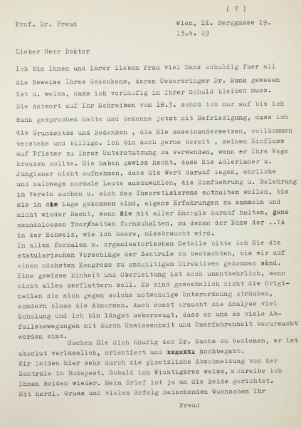 WIEN, IX. BERGGASSE 19.13. 4. 19