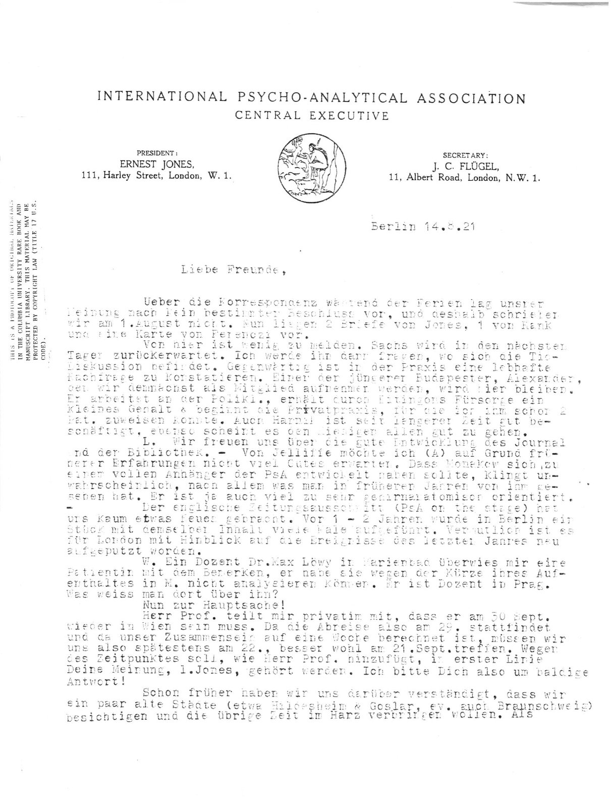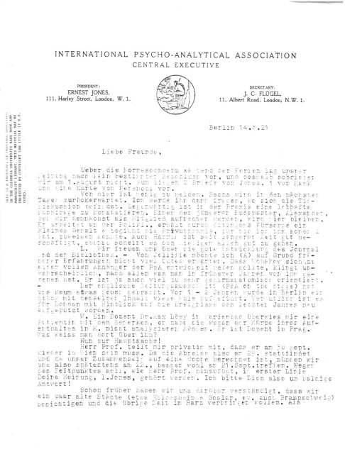 wir am 1. August nicht. Nun liegen 2 Briefe von Jones, 1 von Rank
