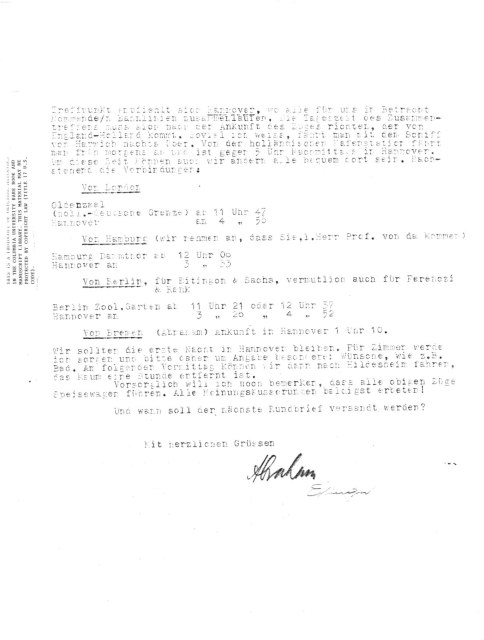 Von Bremen (Abraham) Ankunft in Hannover 1 Uhr 10.