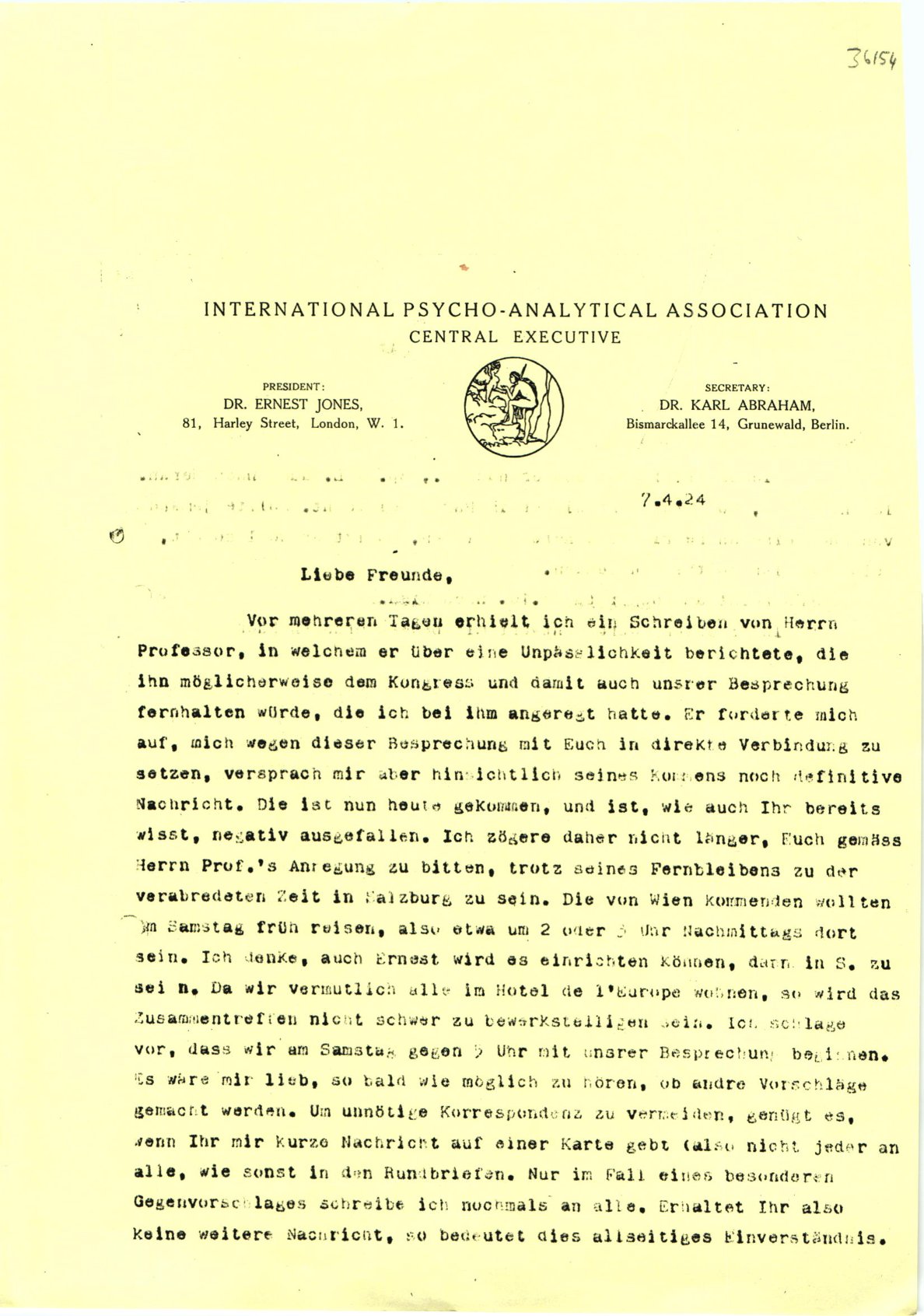 Herrn Prof.’s Anregung zu bitten, trotz seines Fernbleibens zu der