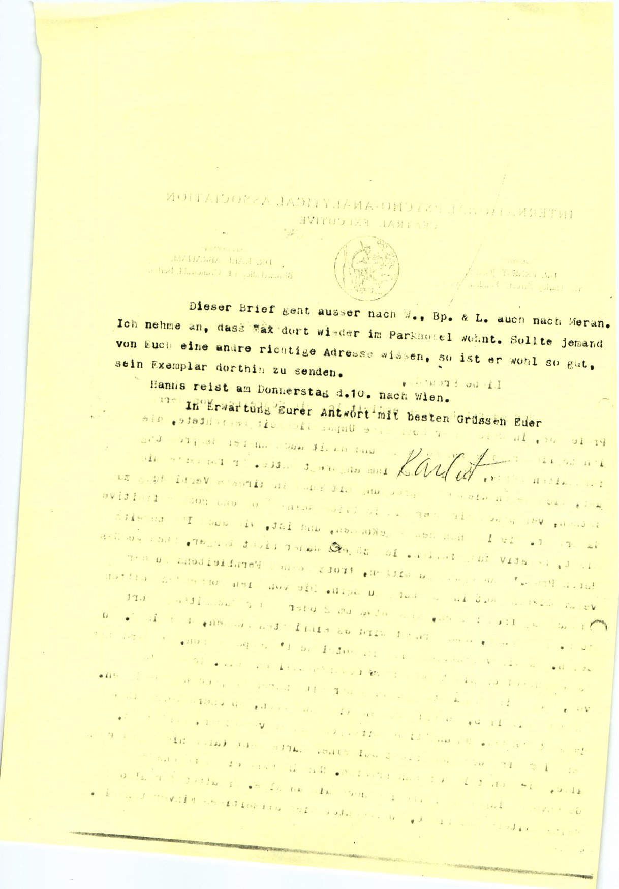 Dieser Brief geht außer nach W., Bp., & L. auch nach Meran.