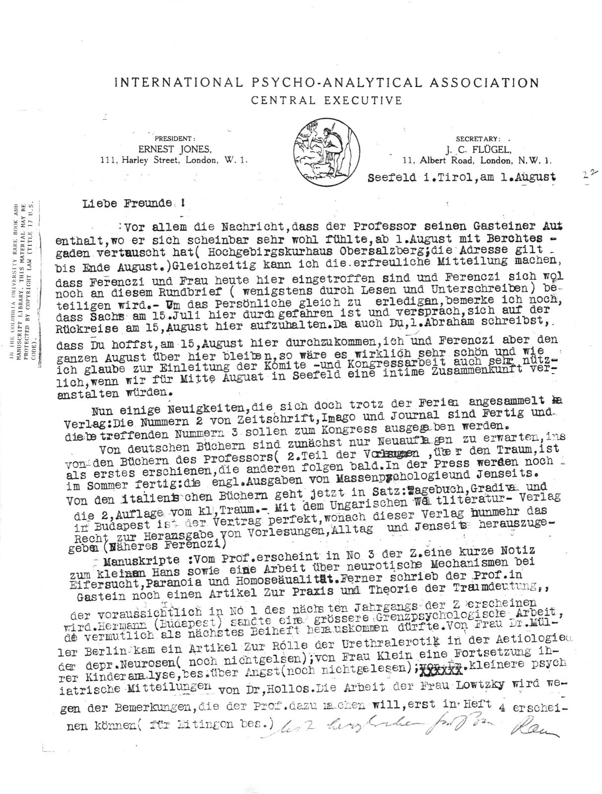 daß Du hoffst, am 15. August hier durchzukommen, ich und Ferenczi aber den