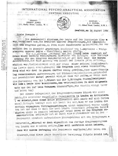 muß“). Eitingon beklagt sich mit Recht bei mir, daß er aus London die