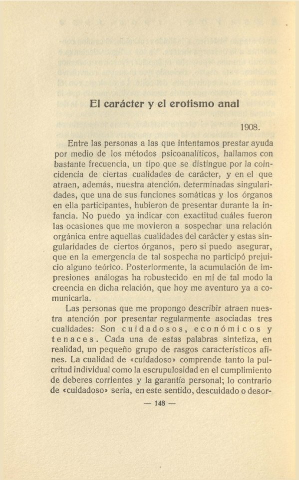 Freud, Sigmund López-Ballesteros y de Torres, Luis 1908-002/1929.es 10422 El carácter y el erotismo anal Obras-Madrid 13, 1929 148–153 Fertig Fertig Ganz fertig / zutreffend Fehlt Fehlt Ganz fertig / zutreffend EB