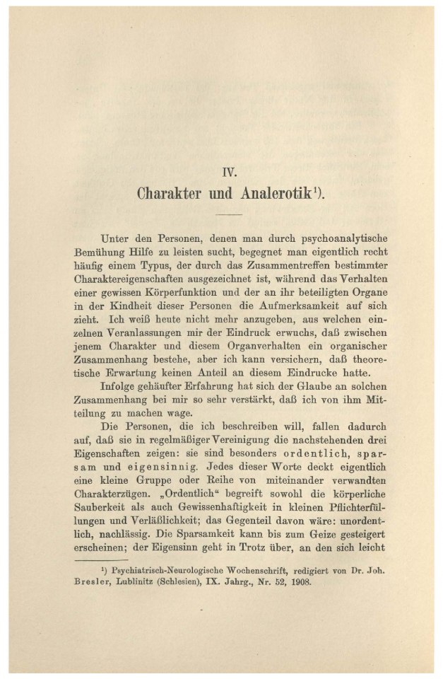 Freud, Sigmund 1908-002/1924 1908b 10422 Charakter und Analerotik GS 5 261–267 Fertig Fertig Ganz fertig / zutreffend Fehlt Fehlt Ganz fertig / zutreffend EB