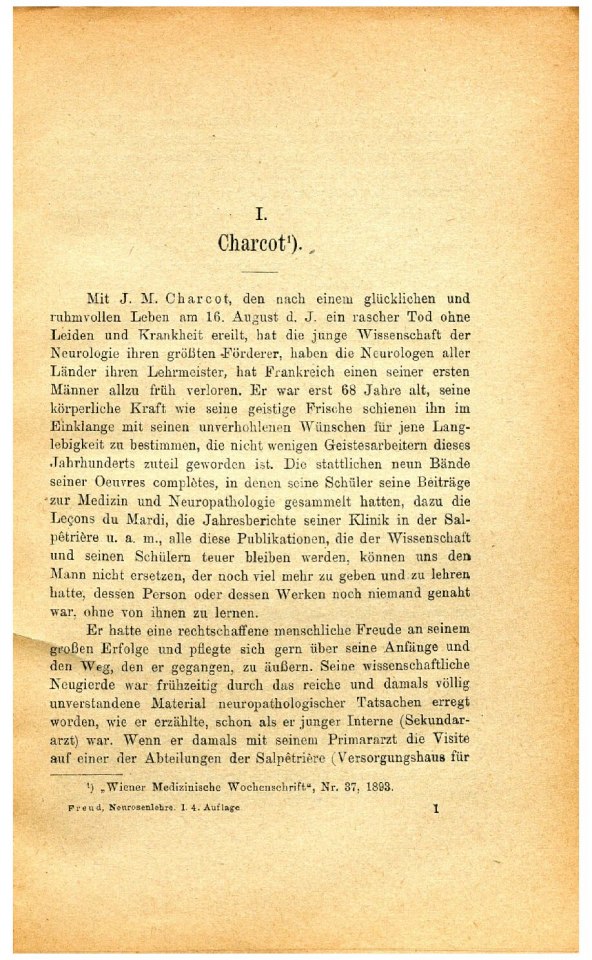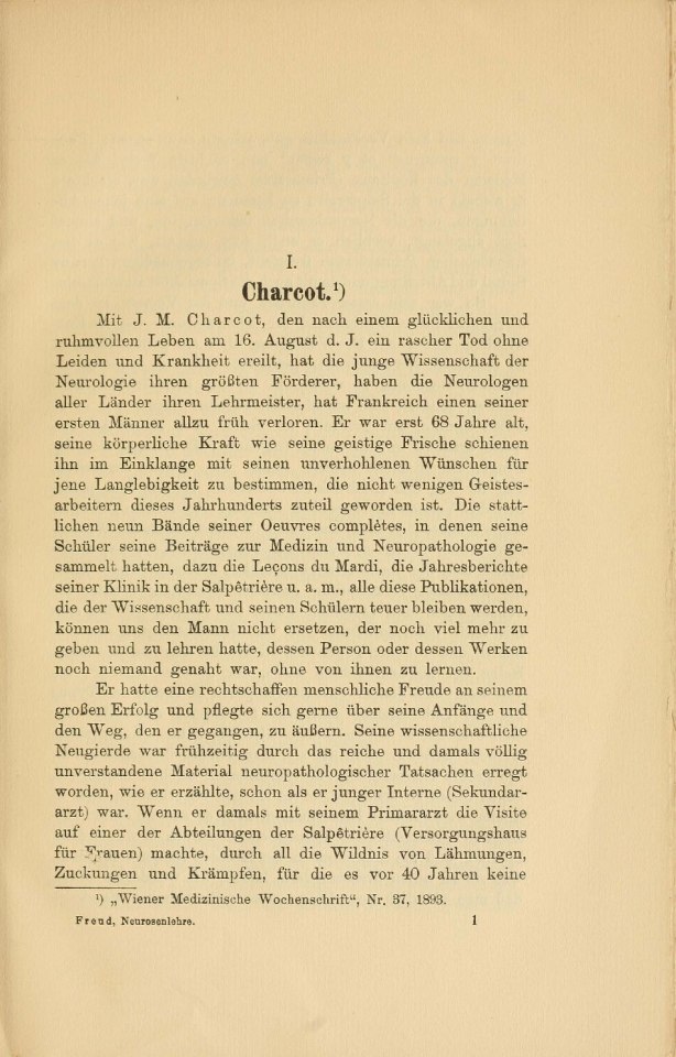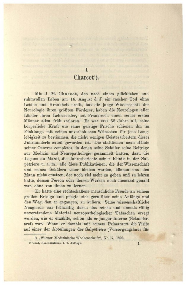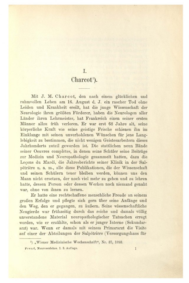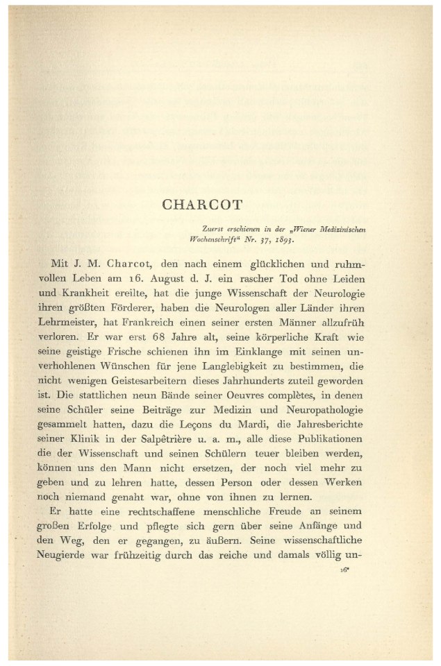Freud, Sigmund (1893f): Charcot +. In: Wiener med. Wschr., Bd. 43 (1893), Sp. 1513- 1520. GW I, 21-35.
