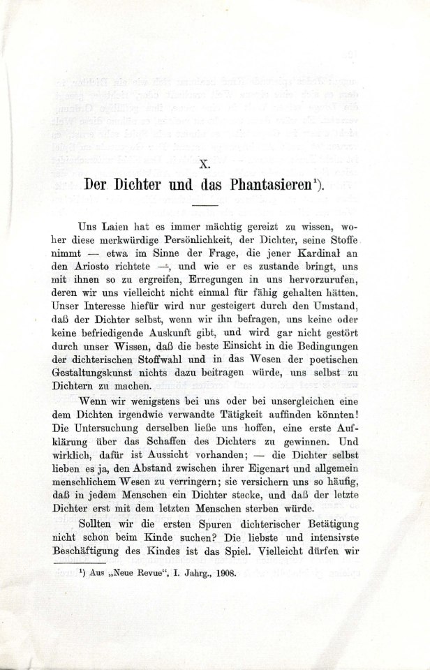 Freud, Sigmund | 1908-005/1969 | 1908e | Der Dichter und das Phantasieren | SA 10 | 169–179 | Fertig ✔ | Nicht erforderlich/ | Nicht erforderlich/ | Nicht erforderlich/ | Nicht erforderlich/ | Nicht erforderlich/ | ✔ | ✔ | ||||