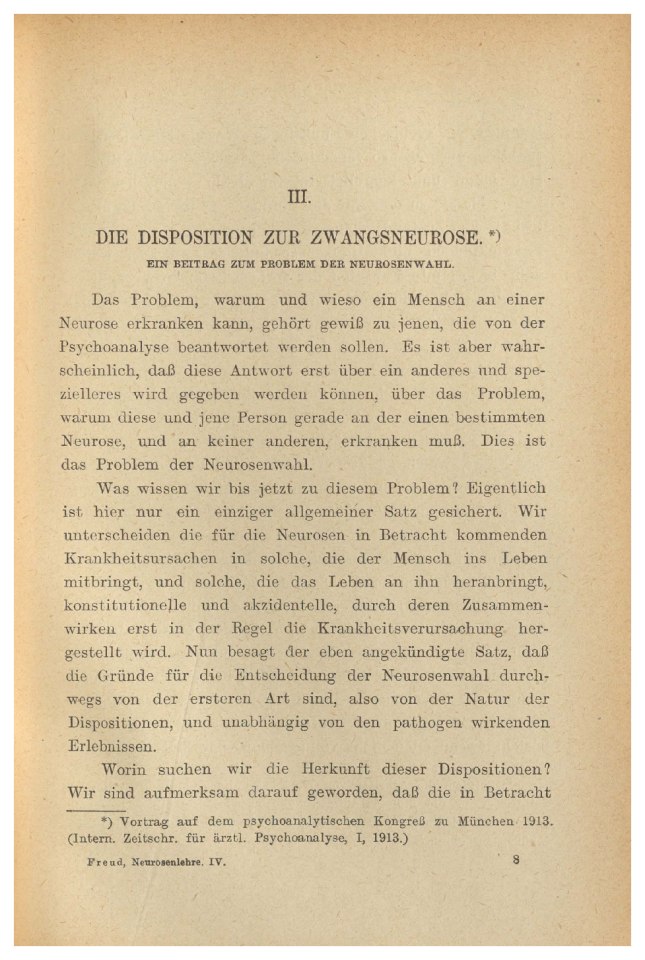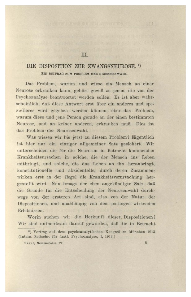 Freud, Sigmund | 1913-010/1931 | 10428 | Die Disposition zur Zwangsneurose | Kl. 8° [3] | 5–16 | Fertig ✔ | Fertig ✔ | Ganz fertig / zutreffend ✔ | Fehlt ✖ | Fehlt ✖ | Teilweise - | ✔ | EB | ✔ |