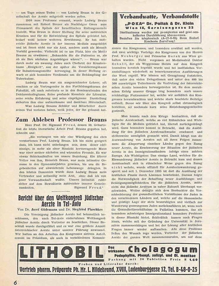 | Freud, Sigmund | 1936-051/1936 | 1936d | 1936-04 | Zum Ableben Professor Brauns | Mitteilungsblatt der Vereinigung jüdischer Ärzte, [4], 1936, 29 | 6 | Fertig ✔ | Fertig ✔ | Ganz fertig / zutreffend ✔ | Fehlt ✖ | Fehlt ✖ | Ganz fertig / zutreffend ✔ | ✔ | EB | ✔ | ||