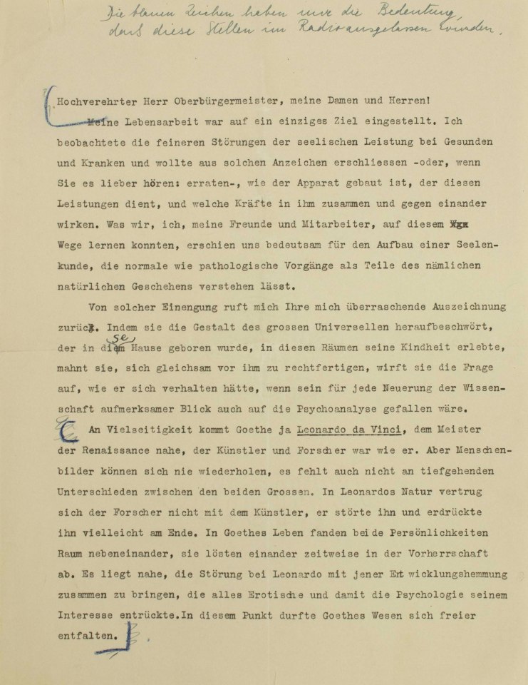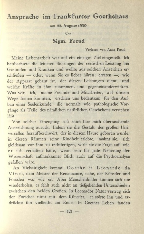 Freud, Sigmund 1930-051/1969 1930d Ansprache im Frankfurter Goethe-Haus SA 10 292–296 Fertig Nicht erforderlich/ Nicht erforderlich/ Nicht erforderlich/ Nicht erforderlich/ Nicht erforderlich/