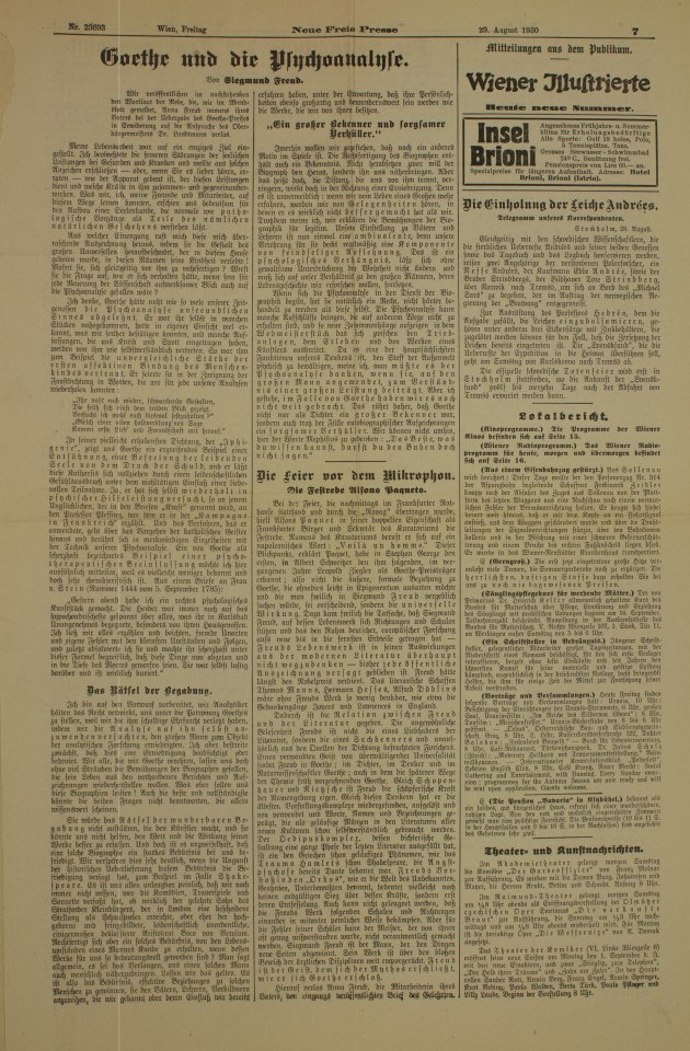 Freud, Sigmund 1930-051/1930 1930e 1930-08 Goethe und Psychoanalyse Neue Freie Presse. Morgenblatt, 67, 1930, 23693 7 Fertig Fertig Teilweise - Fehlt Fehlt Ganz fertig / zutreffend EB