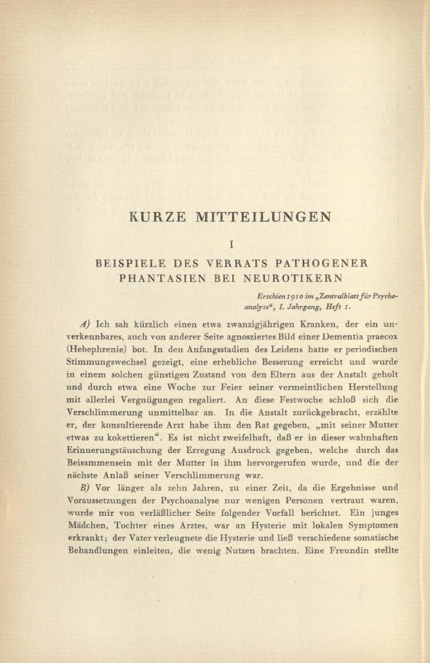 Freud, Sigmund | Strachey, James | 1910-007/1957.en | 10401 | Two Instances of Pathogenic Phantasies Revealed by the Patients Themselves | SE 11, 1957 | 236–237 | Fertig ✔ | Nicht erforderlich/ | Nicht erforderlich/ | Nicht erforderlich/ | Nicht erforderlich/ | Nicht erforderlich/ | ✔ | ✔ | |||