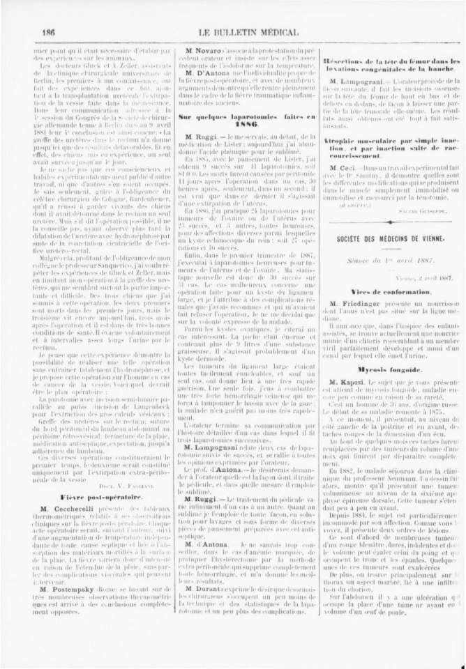 Bericht [in Französisch]: Société des médecins de Vienne. Séance du 1er avril 1887
