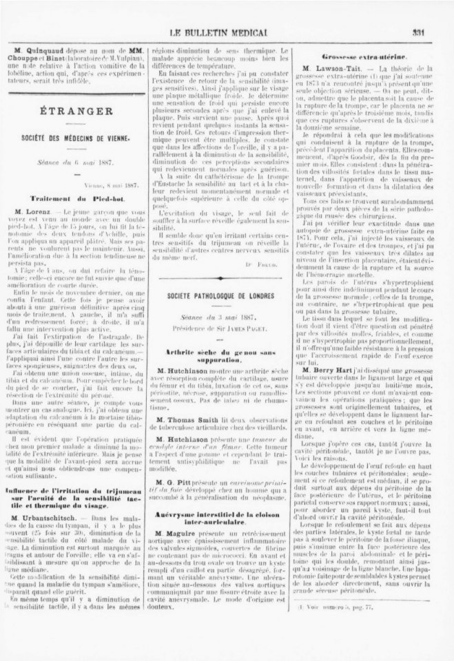 Bericht [in Französisch]: Société des médecins de Vienne. Séance du 6 mai 1887