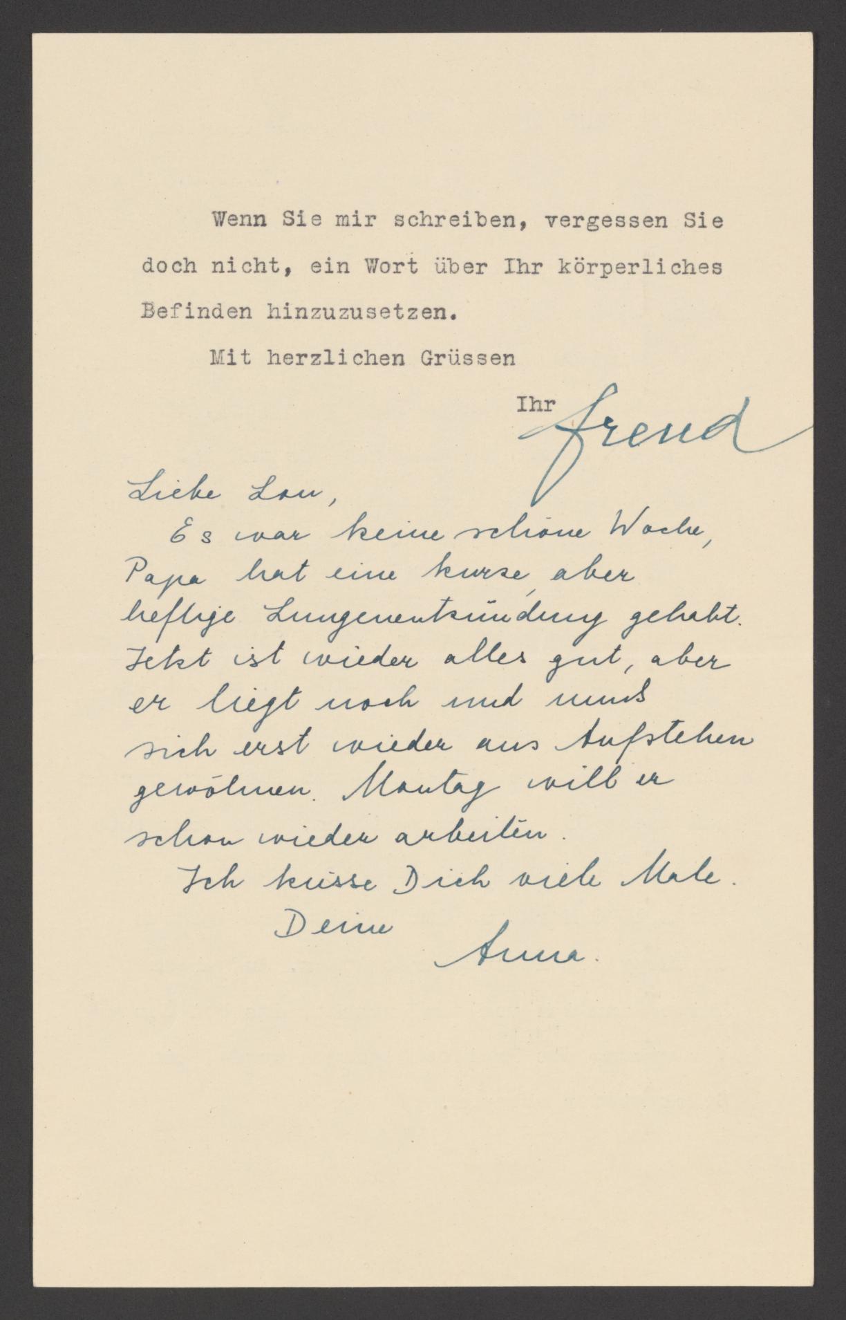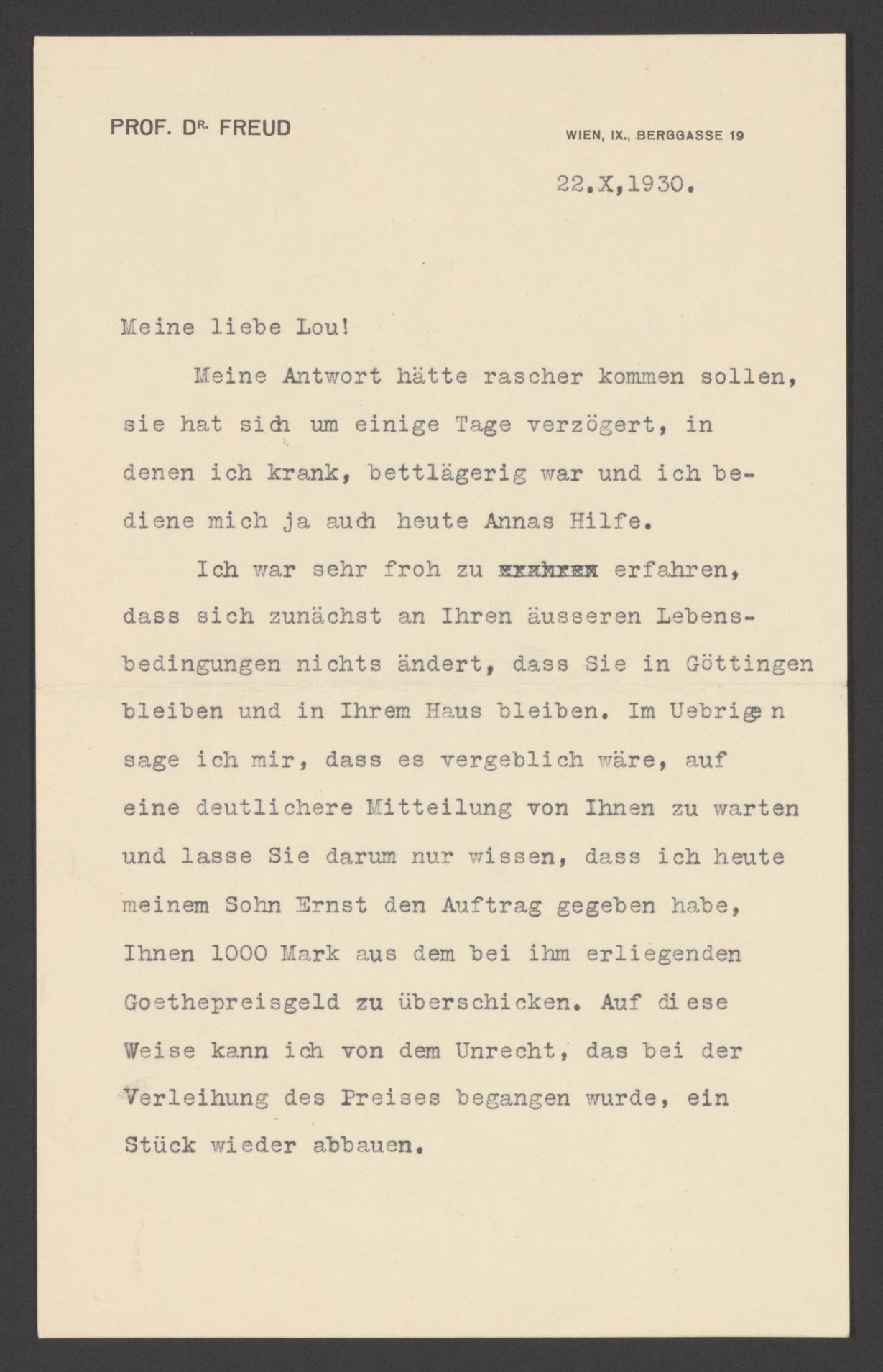 Sigmund Freud Papers: General Correspondence, 1871-1996; Andreas-Salomé, Lou; From Freud; Originals; 1925-1936
