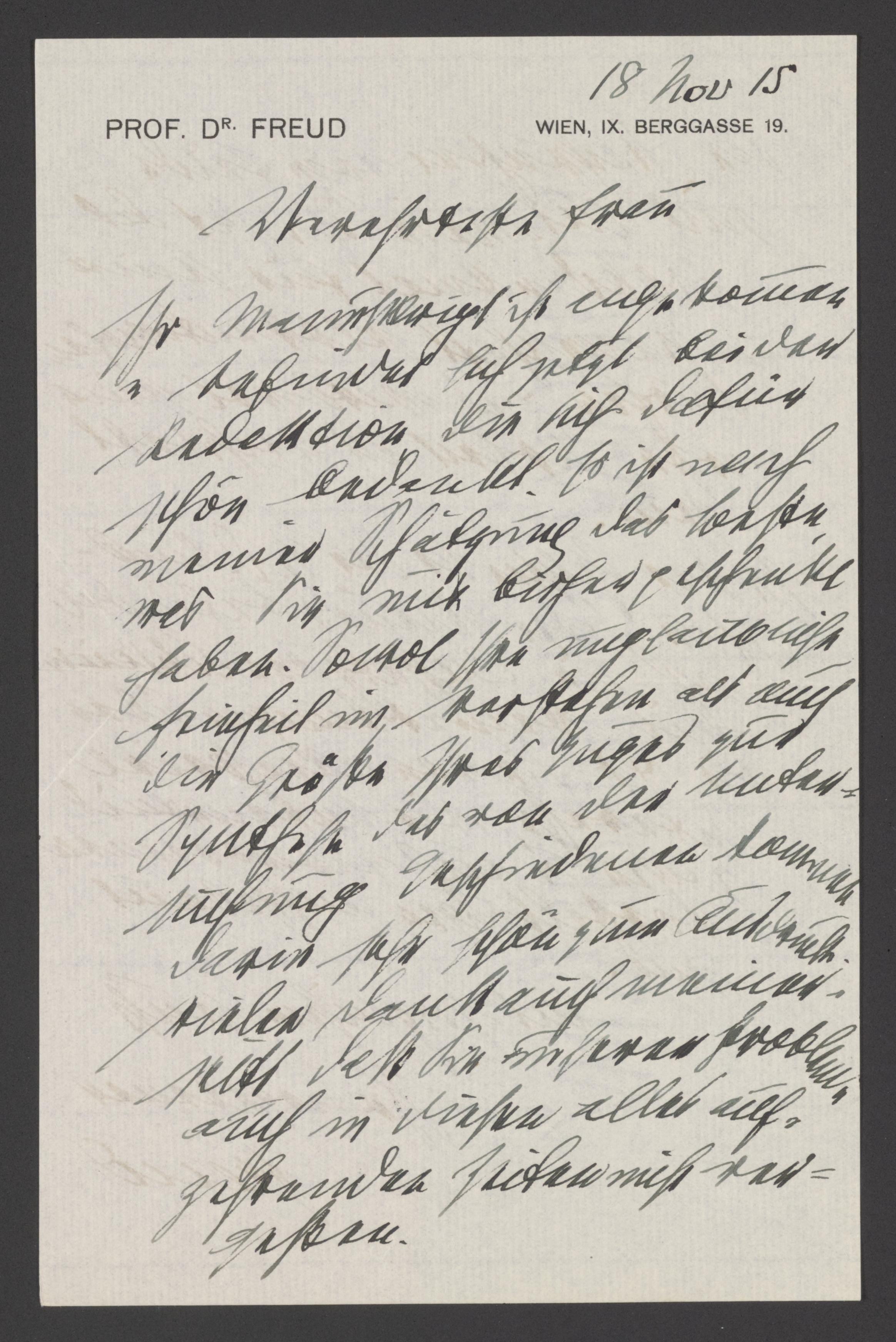 Sigmund Freud Papers: General Correspondence, 1871-1996; Andreas-Salomé, Lou; From Freud; Originals; 1912-1915