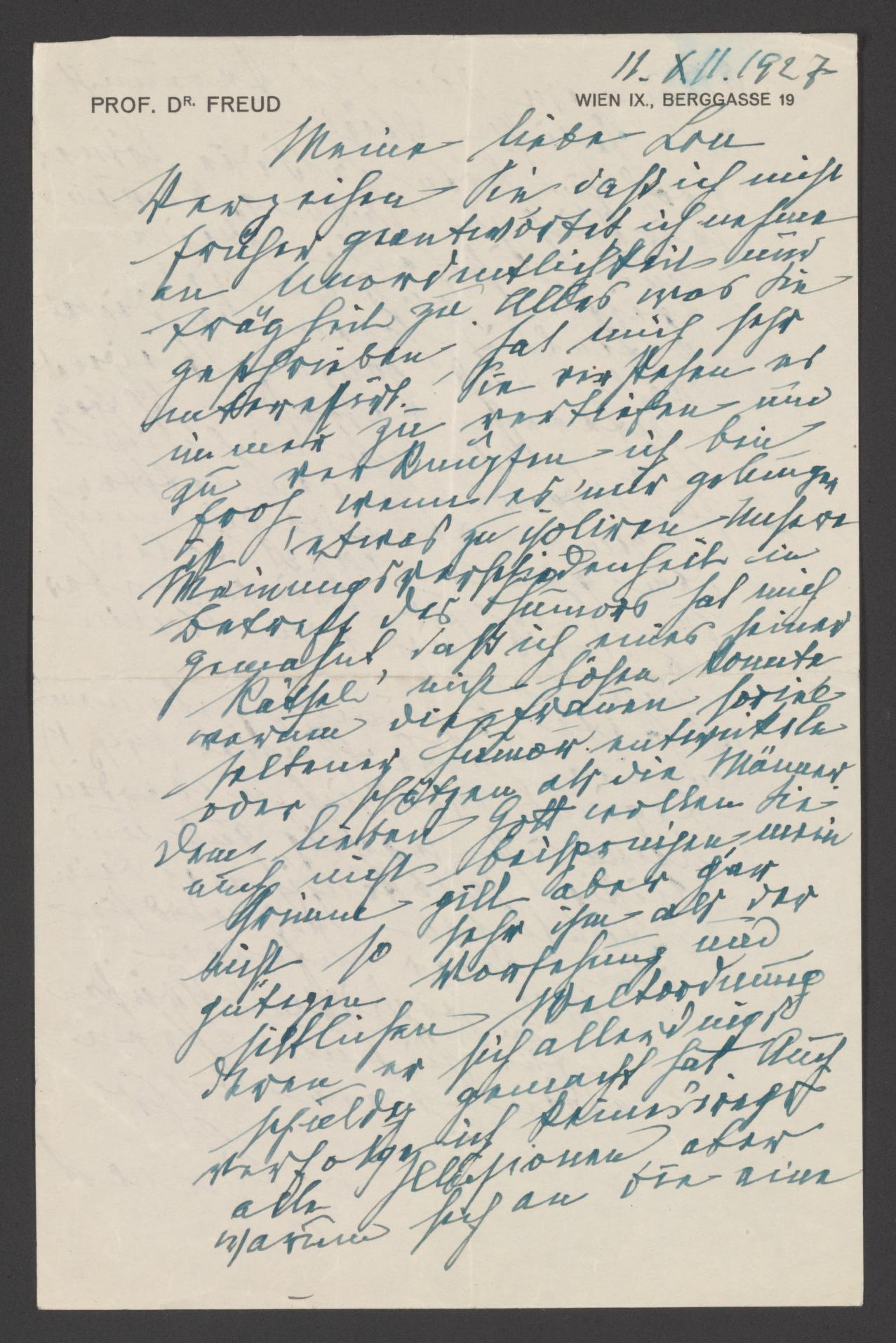 Sigmund Freud Papers: General Correspondence, 1871-1996; Andreas-Salomé, Lou; From Freud; Originals; 1925-1936