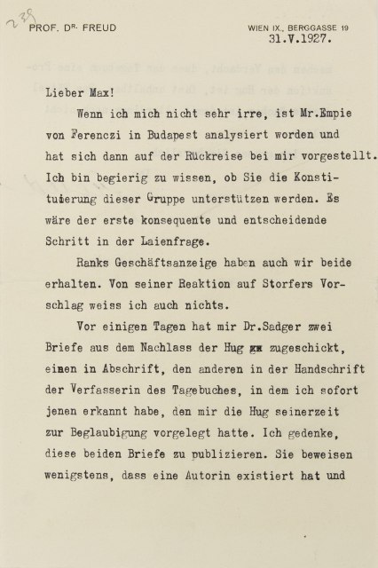 - Any - *** [Freud, Sigmund] .ja /1934.pt 10552 A magyarországi pszichoanalitikai egyesület Tagjai Abel, Carl Abel, R. Abiturienten Abraham, Gerd Abraham, Hedwig Abraham, Hilde Abraham, Karl Abraham, Karlsen Abrahamsen, David Abrahamson, Edith Academie des Sciences, Inscriptions et Belles-Lettres de Toulouse Achelis, Werner Achmetis, Sereimi F. Action et Pensee Acton, Harold Adam Andrusier Adam, Robert Adams Adams, Leslie Addams, Jane Adderley, Harold Adler, Alfred Adler, Heinrich Adler, Miguel Ben-Tzvi Adler, Paul Adler, Paula Adler, Rudolf Ady, Endre Africopa Aichhorn, August Aichhorn, Thomas Alain de Mijolla Albert Albert, Georg Albert, Julius Albinski, Marjan Albrecht Hirschmüller Albrecht, Adelbert Alder, Miguel Ben-Tzvi Aldington, Hilda Alemann, Ernesto F. Alexander Alexander, Franz Alexander, John Rubie Alicke, Walter Alix All Souls Universalist Church Allen, Grant Allen, Percy Allende, Navarro Allerhand Allgemeine Nährpflicht Allister Almoli, Salomo Almuth Bruder-Bezzel Alnæs, Randolf Alterman Altmann, Siegfried Altounian, Janine Alvarez, Walter Alvim, Francisco American candidates for psychoanalytic training American Embassy Paris American Guild American Guild for German Cultural Freedom, Inc. American Joint Distribution Committee American Medical Association American Mother American Neurological Association American Psychiatric Association American Psychoanalytic Association American Psychological Association Amitai, Menachem Amrith, M. Analyt. Psych. Club Analytical Psychology Ander, Alex Anderson, Wing Andersson, Ola Andrae, Matthias Andreas Peglau Andreas, Friedrich Carl Andreas-Salomé, Lou Angel, Anny Angela Graf-Nold Anglo-Danubian Lloyd Angstowy, Rudolf Anilo, Lili Ignatus Ankenbrank, Ulrike Ankles, Thomas Anna Freud Anna-Maria Accerboni Anne de la Payonne-Lidbom Ans Anthi, P. R. Antiquariat Zerfaß & Linke Anzeiger der k. k. Gesellschaft der Ärzte in Wien Aranha Aranha, Temistocles da Graça Archiv für Frauenkunde Arenberger Arens, Hanns Argentinisches Tageblatt Arguimban, Louisa [?] Aristoteles Arnaldo Novelletto Arnold, Matthew Arnot Arnstein Artemidori, Daldiani Artemidoros aus Daldis Artigues, René Artlett Ärzteverein Polen Ascher, Arnold Ascher, Dr. Ascher, Paula Ashford Ashton Askowith, Dora Asnel Asociacion Psicoanalítica Argentina Assagioli, Roberto G. Associação Brasileira de Psicanálise Association for the scientific treatment of Criminals Association Psychanalytique de France Astor, Lenox Asúa, Felipe Jiménez de Athanasopoulos, G. Atlantic Monthly Atwood, Wallace Auerbach, Erich Auerbach, Ulrich Augagneur Augenfeld, Felix Austrian Centre Austrian Circle Austrian Self Aid [Dye] Austrian Self-Aid Austrian Self-Aid [Freud, Robert] Austrian Self-Aid [Syz, H. C.] Avignon, C. B'nai B'rith B'nai B'rith [Ehrmann] B'nai B'rith [Eintracht] B'nai B'rith [Geehrter Herr und Lieber Bruder; 1921-05-26] B'nai B'rith [Geehrter Herr und Lieber Bruder; 1922-03-05] B'nai B'rith [Österreich] B'nai B'rith [Ostrava] B'nai B'rith [Prag] B'nai B'rith [Präsident] B'nai B‘rith [Karlsbad] Ba Sen, Susan [?] Baartman, Erich Babits, Mihály Bach Bachen Bacher, Eduard Bachrach, Ella Bachvich Badian Baerlocher, Ernest R. [Ingenieur] Baginsky, Adolf Bahr, Hermann Baillet, F. Baines, Cecil M. Bairstow, H. Baistow Bakman, Nina Bakonyi, Stefano Baldwin Balint Balint, Michael Baliteau, C. Balmes, Hans Jürgen Balseinte, Anne Bangs [?] Bankierskantoor van Lissa und Kann Baptist [?] Bar, Aryeh Barach, Alvan Barag, Gerda Barag, Gershon Barbour, W. A. Barclays Bank Bardach, Hermann Bardas, Fanny Barek Barnes, Barry Barreras, Antonio Barsis, Max Barsis, Olga Barskaya, Vera Bartemeier, Leo Baruffi, Lisa Baskakowa, Tatiana Basque Children Bass, Alfred Bass, Martha Bass, Richard Baudouin, Charles Bauer, Eberhard Bauer, Jonanna Bauer, Victor Baum, H. Baum, H. [Mrs.] Baumberger, Yvonne Baumgardt, David Baumgartner, Herbert Bäuml, E. (Wiener Spedition) Bay, Carl Erik Bayard, William Bayer, Lothar Bazor BBC Beach, Charles Beals Beattie Beatty, Maud Becker, Hanna Beer-Hofmann, Paula Beer-Hofmann, Richard Behrend Behrendt, Richard Békei, Marta Békesay, Emmerich Beland, Hermann Belfest, Salomon Belinski Belobratov, Alexander Belousova, V. A. Benabu Bendel, Eugène Bender Antiquariat KG Benedek, Therese Benedicty, Gustavo de Benedikt, Cl. Benedikt, Ernst Bengali Institute of Economics Benjamin Jr., Ludy T. Benn, Ernest Bennet, E.A. Bennet, Edward Benthal, V. Bentley Ber, Anna Berdach, Rachel Bereitschaft [Verein für Freiwillige Fürsorge] Berg, Charles Berger, Denise Berger, Georg Berghoff, Ludwig, Dr. Bergmann, Hugo Bergmann, Hugo Samuel Bergmeister Berkeley Hill Berlin, Analysts Emigrús Berlin, Jeffrey B. Berliner Analytiker Berliner Goethebund Berliner Illustrierte Zeitung Berliner Psychoanalytische Vereinigung Berliner Psychoanalytisches Institut Berman, Anne Bermann, Ernst Bermann, Gregorio Bermann, Richard Bermann, Richard A. Bermann-Fischer Verlag Bernard, Andreas Bernardi Bernatek [Familie] Bernays, Anna, geb. Freud Bernays, Ditha Bernays, Edward Bernays, Eli Bernays, Emmeline Bernays, George Bernays, Hella Bernays, Judith Bernays, Lucy Bernays, Martha Bernays, Minna Bernays, Sana Bernays, Sigmund Bernd Nitzschke Bernfeld [?] Bernfeld, Peter Bernfeld, Ruth Bernfeld, Siegfried Bernfeld-Cassirer, Suzanne Bernhard, Georg Bernhard, M. [Herzl-Klub Wien] Bernheim, Hippolyte Bernpub Bernstein Bethausverein Freiberg Betlheim, Stefan Betts Ltd. Betts, Frank Betz, Wilhelm Beucler, André Beumer, Ulrich Beyer-Hoenninger Bianchi, A. Bianchini, Levi Bianchini, Marco Levi Bibliographisches Institut Bibliothekar der Gesellschaft der Ärzte in Wien Bibring, Edward Bickel, Eliezer Lothar Bickels, Jakub Bickerman, M. Biddle, S. G. Bieber, Ann Bieber, Louis Bieberkraut Biederman, Charles [?] Bienenfeld, Franz Biermann Biesinger; I. Biherer Bildungshort [Arbeiterbildungsverein] Binder, H. Bindschedler, Peter Binswanger, Ludwig Binswanger, Robert Birnbaum, Erna Birnbaum, S. Bischler, W. Bissery, J. Bi