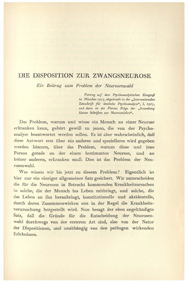Freud, Sigmund 1913-010/1943 1913i 10428 Die Disposition zur Zwangsneurose GW 8 441–452 Fertig Nicht erforderlich/ Nicht erforderlich/ Nicht erforderlich/ Nicht erforderlich/ Nicht erforderlich/