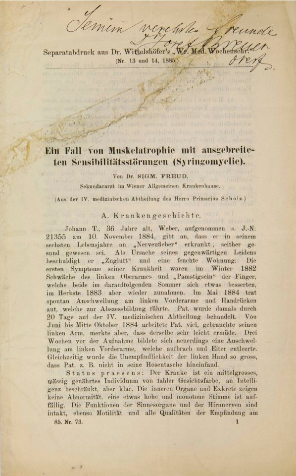 Freud, Sigmund | 1885-002/1885.3 | Ein Fall von Muskelatrophie mit ausgebreiteten Sensibilitätsstörungen (Syringomyelie) | Separatum Wiener medizinische Wochenschrift, 35, 1885, 13 & 14 | 1–12 | Fertig ✔ | Fertig ✔ | Ganz fertig / zutreffend ✔ | Fehlt ✖ | Fehlt ✖ | Ganz fertig / zutreffend ✔ | ✖ | EB | ✔ | ||||